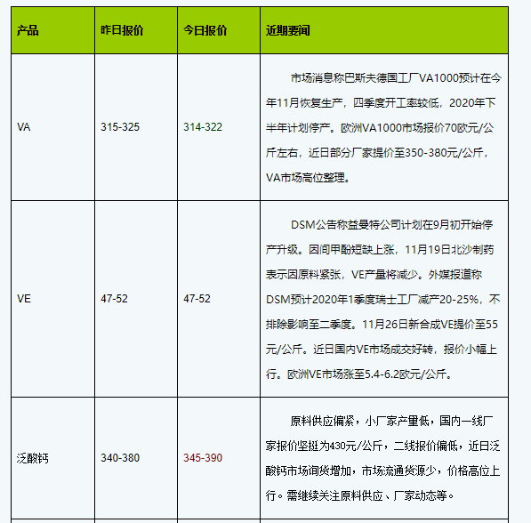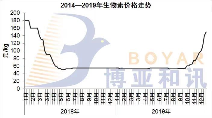 1,先看供应端,生物素涨价主要是因为供应端部分商家停产。受江苏环保检查持续趋严的影响,浙江医药、海嘉诺持续停产,泰格医药由于专利诉讼也停产。这些企业停产产能占比约 35%。我感觉这部分停产的产能是可能很快恢复的。