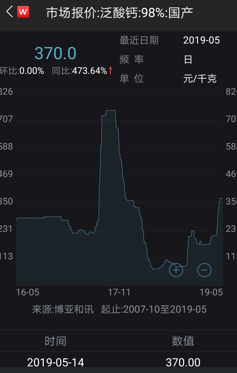 弹性肯定不如方大,沧大好(因为这二个的涨价比例都占比90%),所以并不需要期待他能涨成下一个方大与下个沧大,只要他的泛酸钙还处于这个位置或还能上涨,他的安全空间就具备了我能持仓的条件。