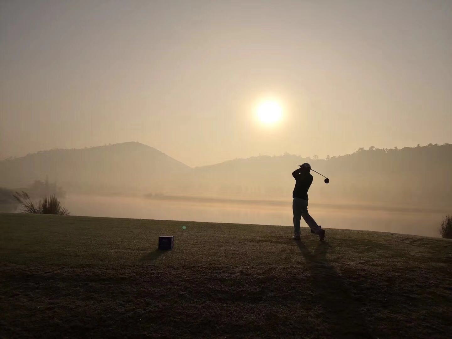 我大部份时间会在打球的,但较少下场,因为本地没有好的高尔夫球场,今年其实只下场不到十次,基本上是在练习场上练习,因为我一般喜欢在晚上八点前能回到家。