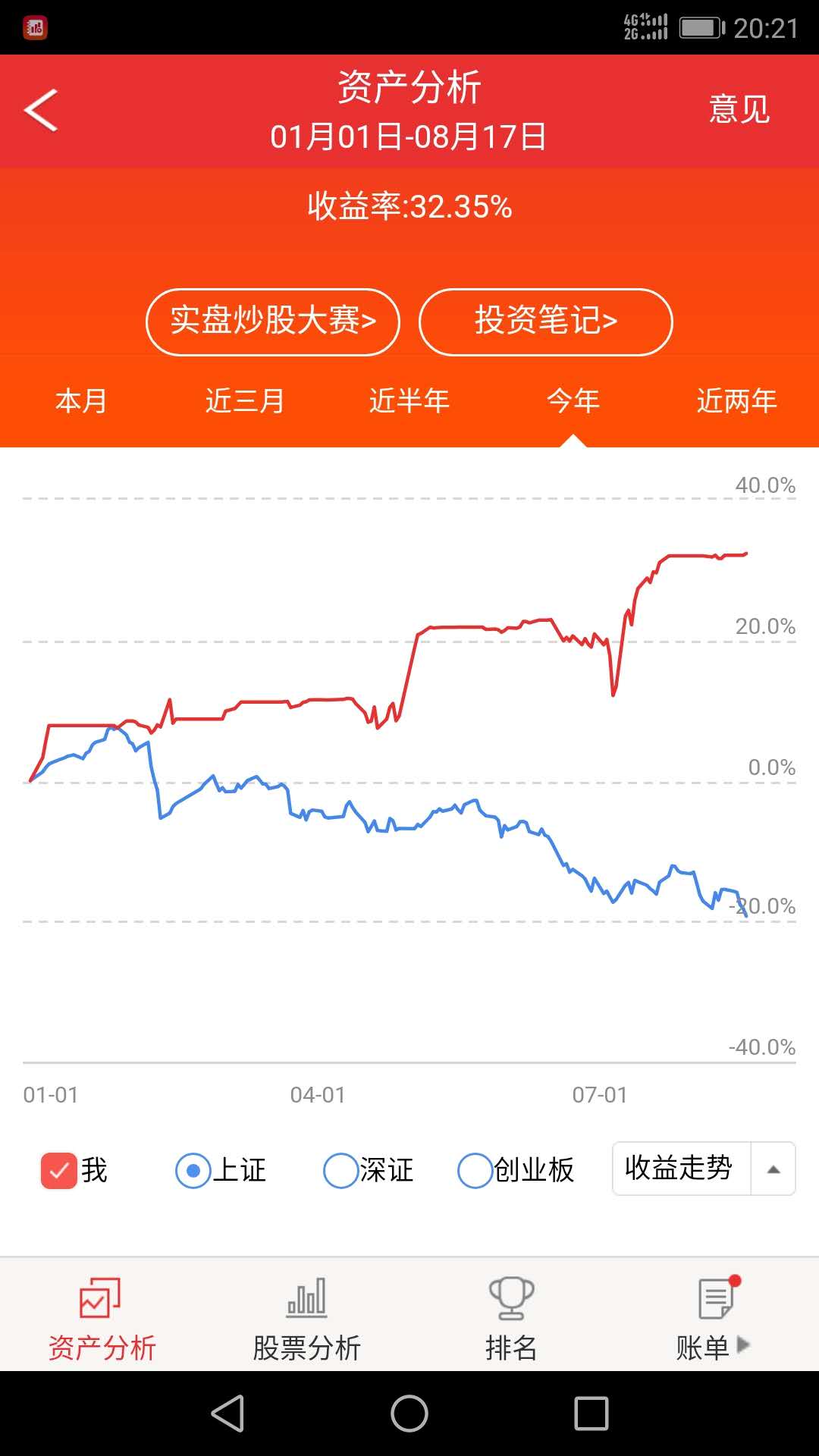 当然,像6月19日那种误判会存在的,帐户中的曲线那天下跌幅度是很大很可怕的,但依然会慢慢的新高。发一张2013年在淘股吧做实盘的每日收益曲线图。可以说,正确清晰的投资思路,你的收益曲线会一直向上的。但像目前这样,我是不再像以前那样看盘而持仓,虽然曲线难看多了,但并不影响他依然会向上走。与大盘的涨跌关联度并不大。