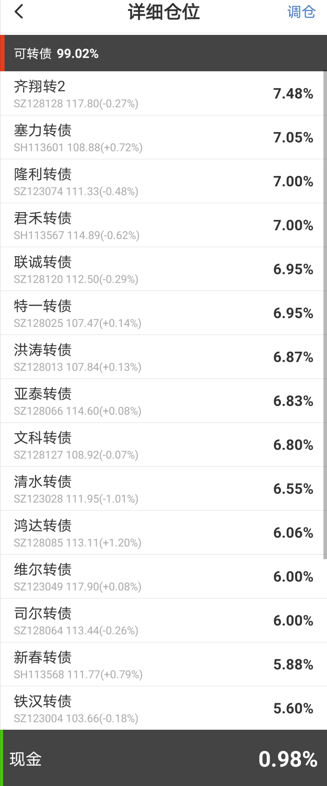 仓位98%