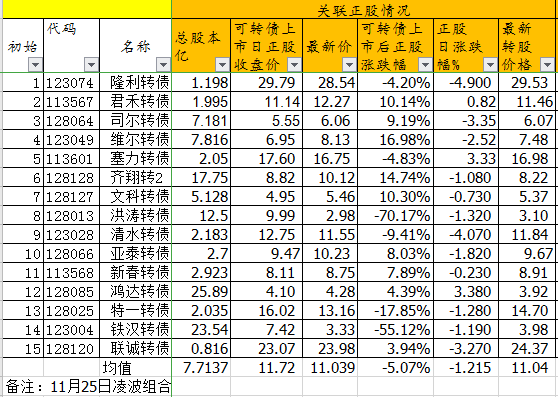 双低转债还是相对稳定一些。组合又一天价格和溢价率双降。