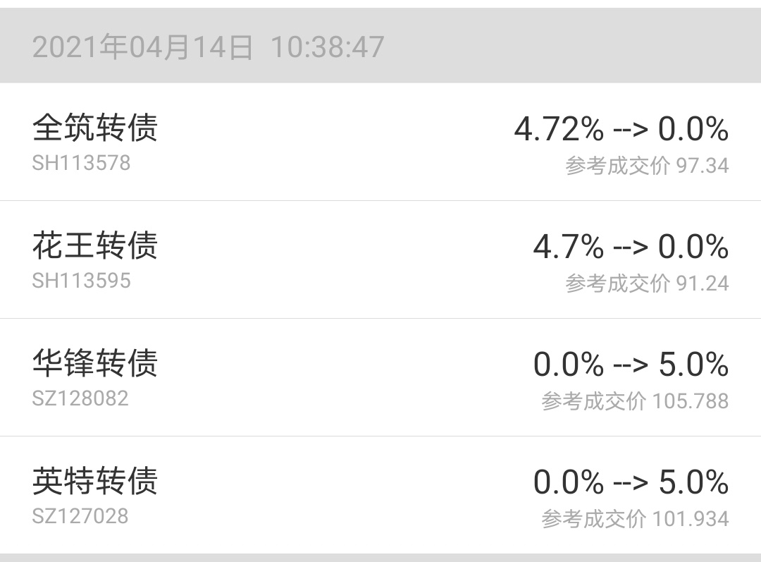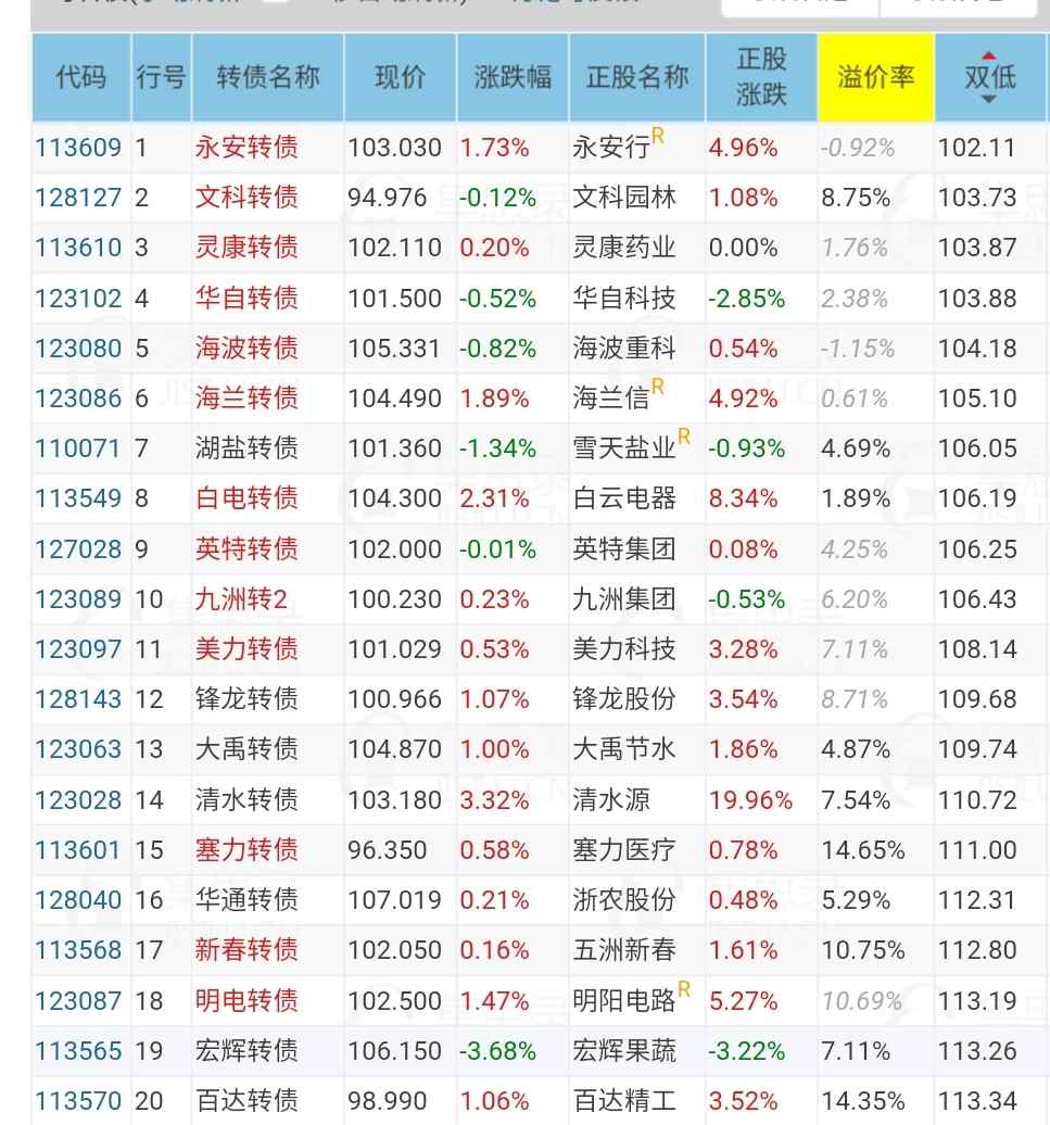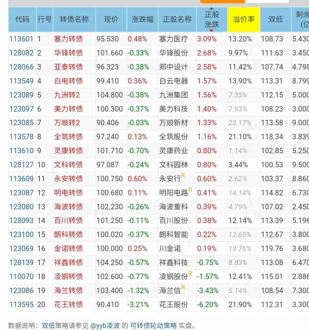 对可转债价格和溢价率*100进行相加,值越小排名越排前。统计结果如下