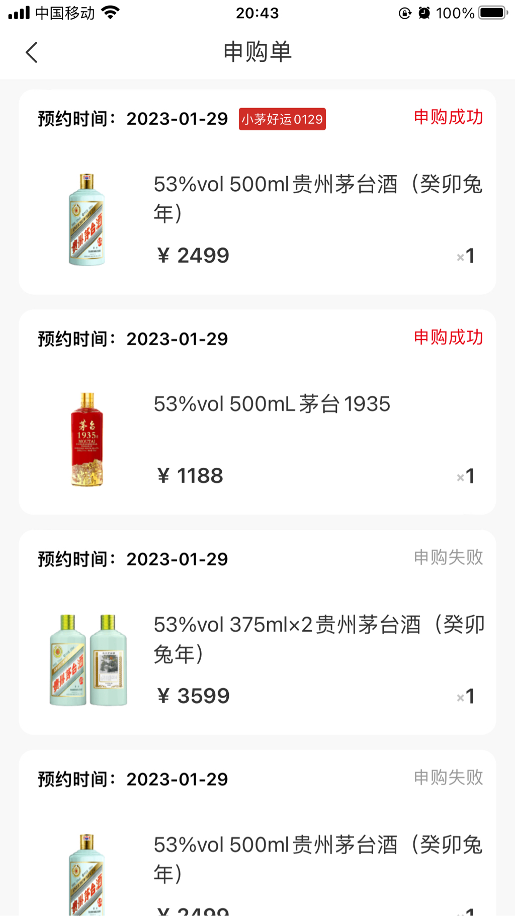 预约申购快一年了,毛都没中过,想着申购这么久,得中一瓶后,立马不玩了,要不这么久不值得啊。