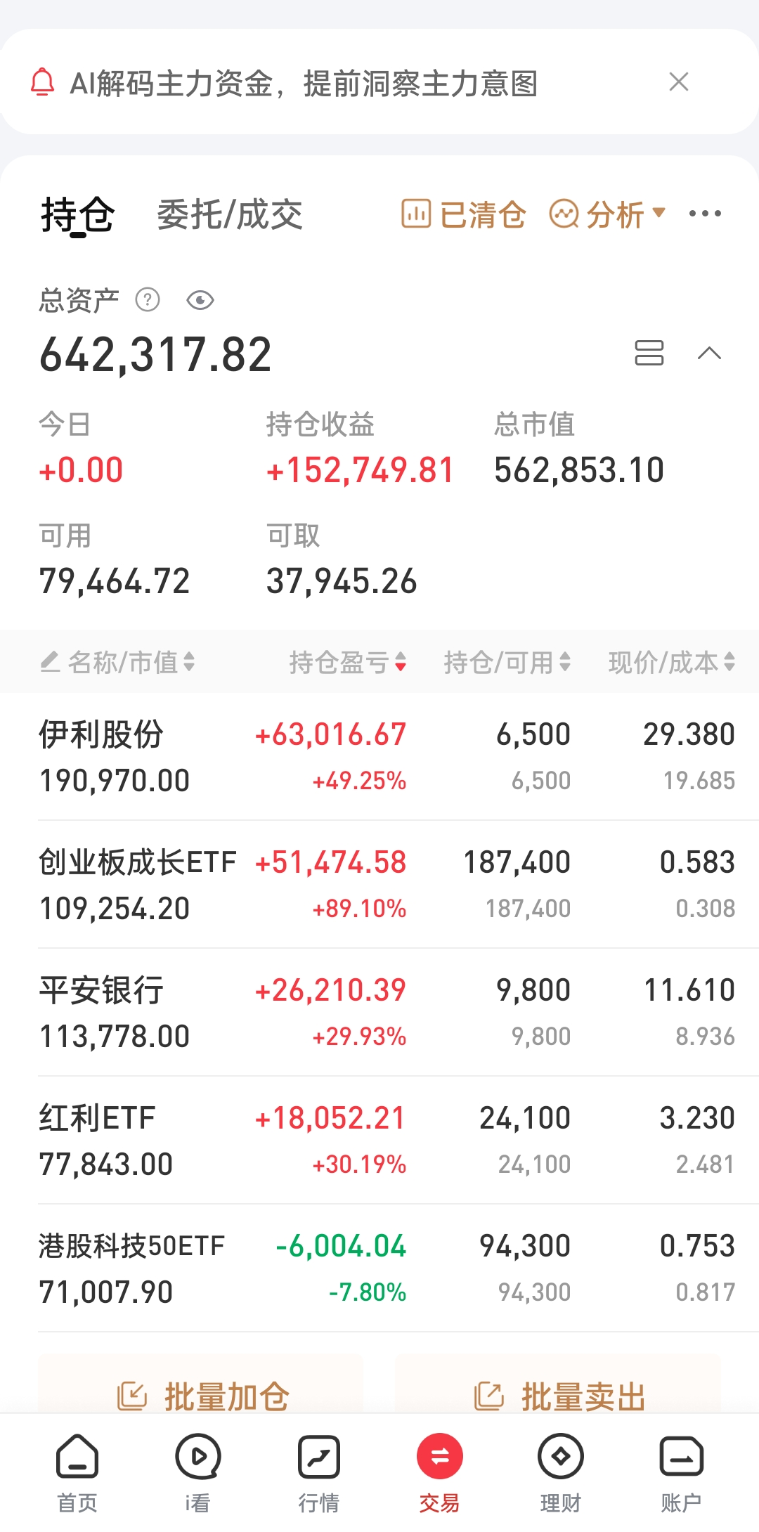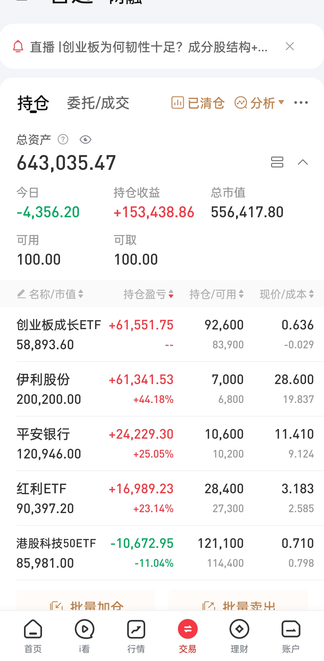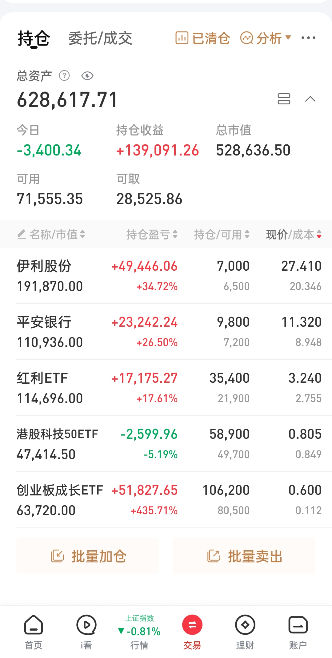 平安银行和伊利股份依然在底部慢悠悠墨迹。新加了部分港股科技etf,账户攻守平衡一下。