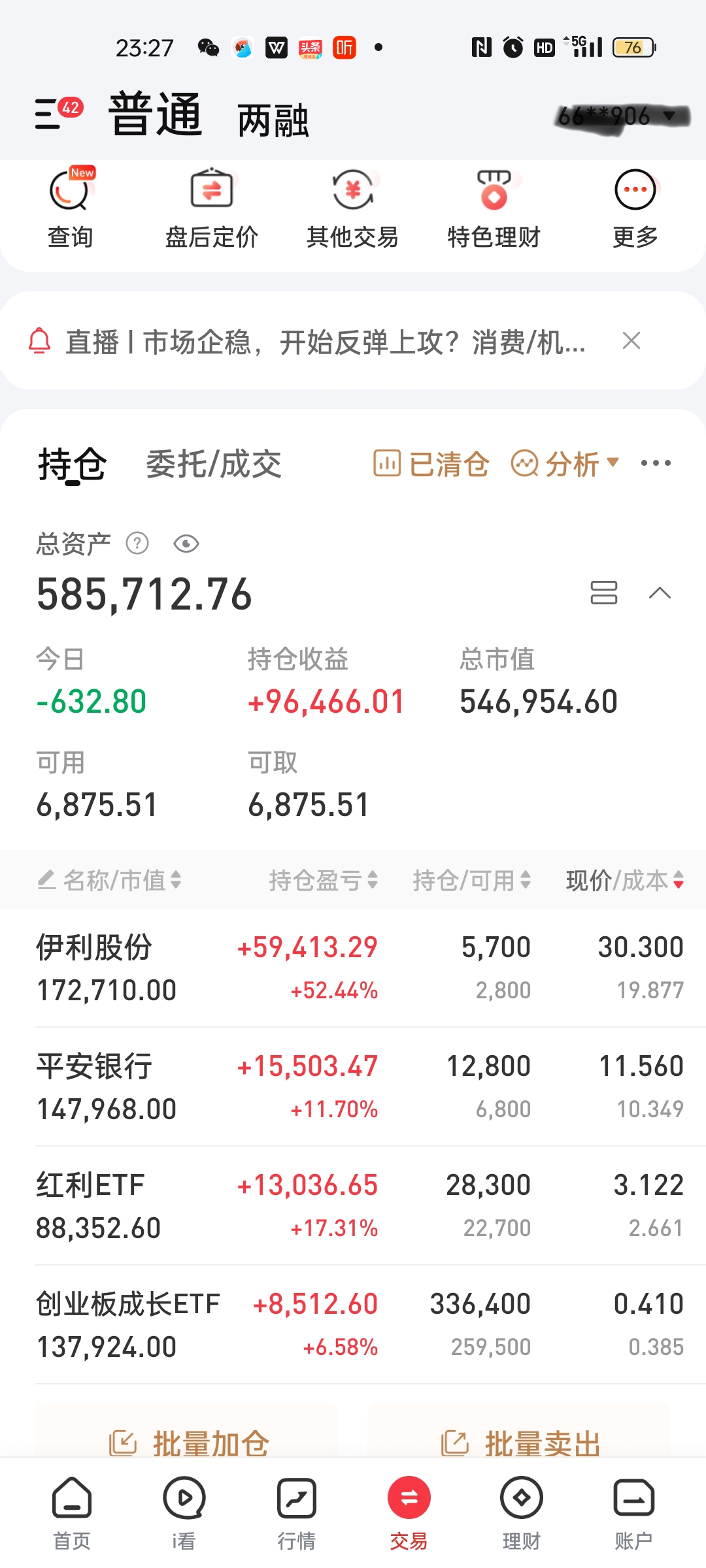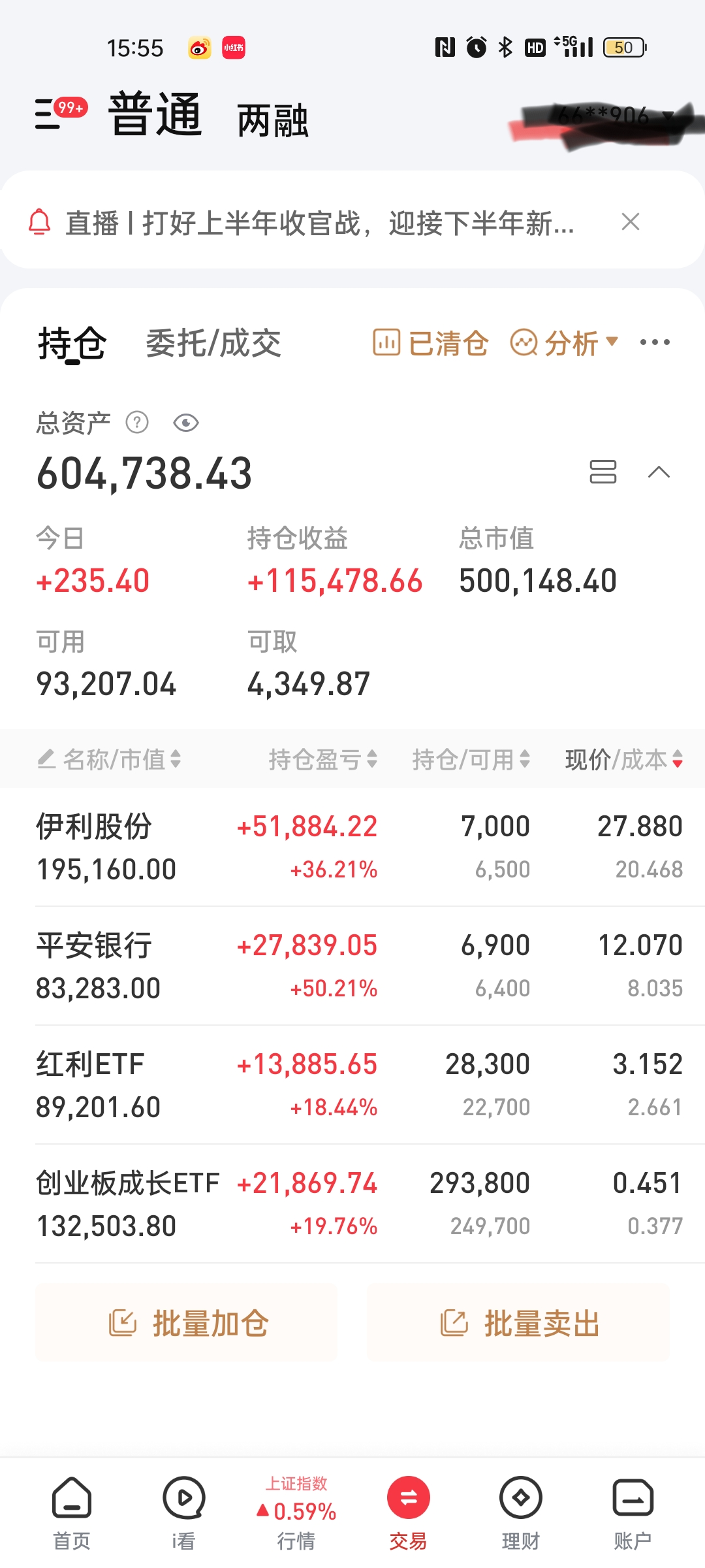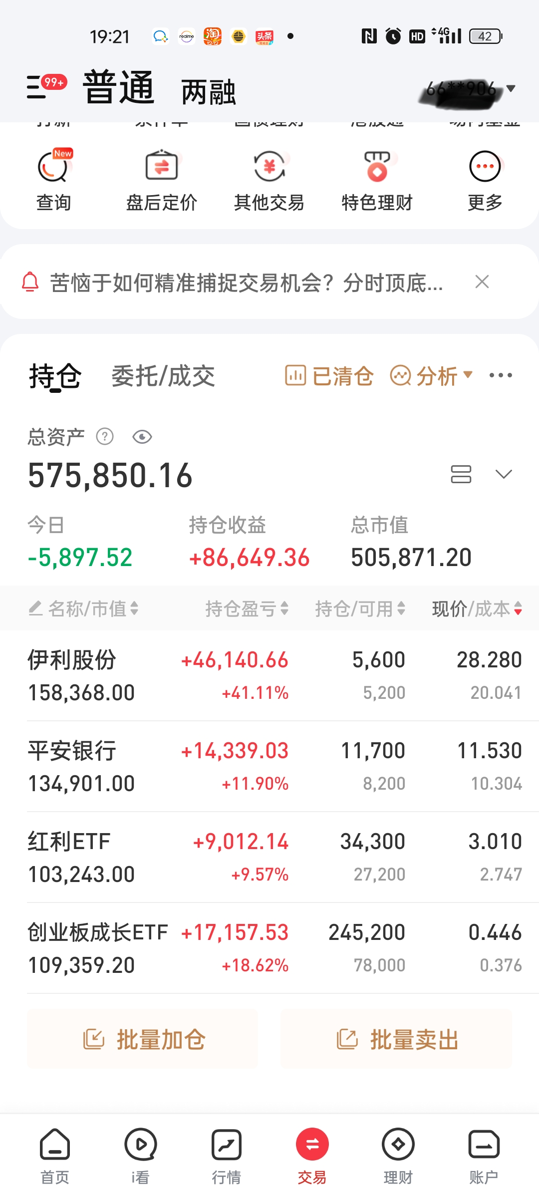 平安银行和伊利股份依然在底部慢悠悠墨迹。新加了部分港股科技etf,账户攻守平衡一下。