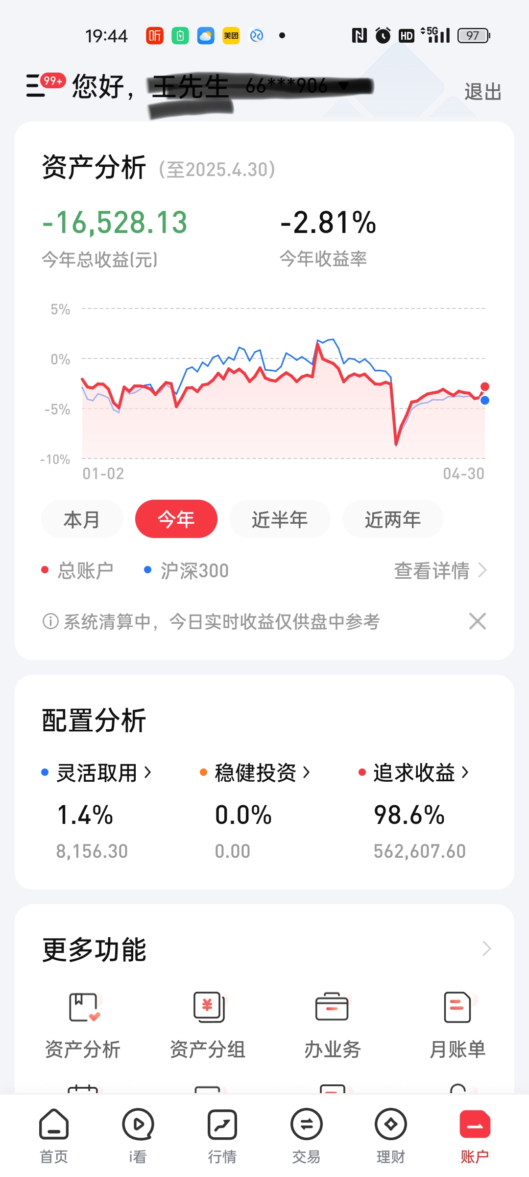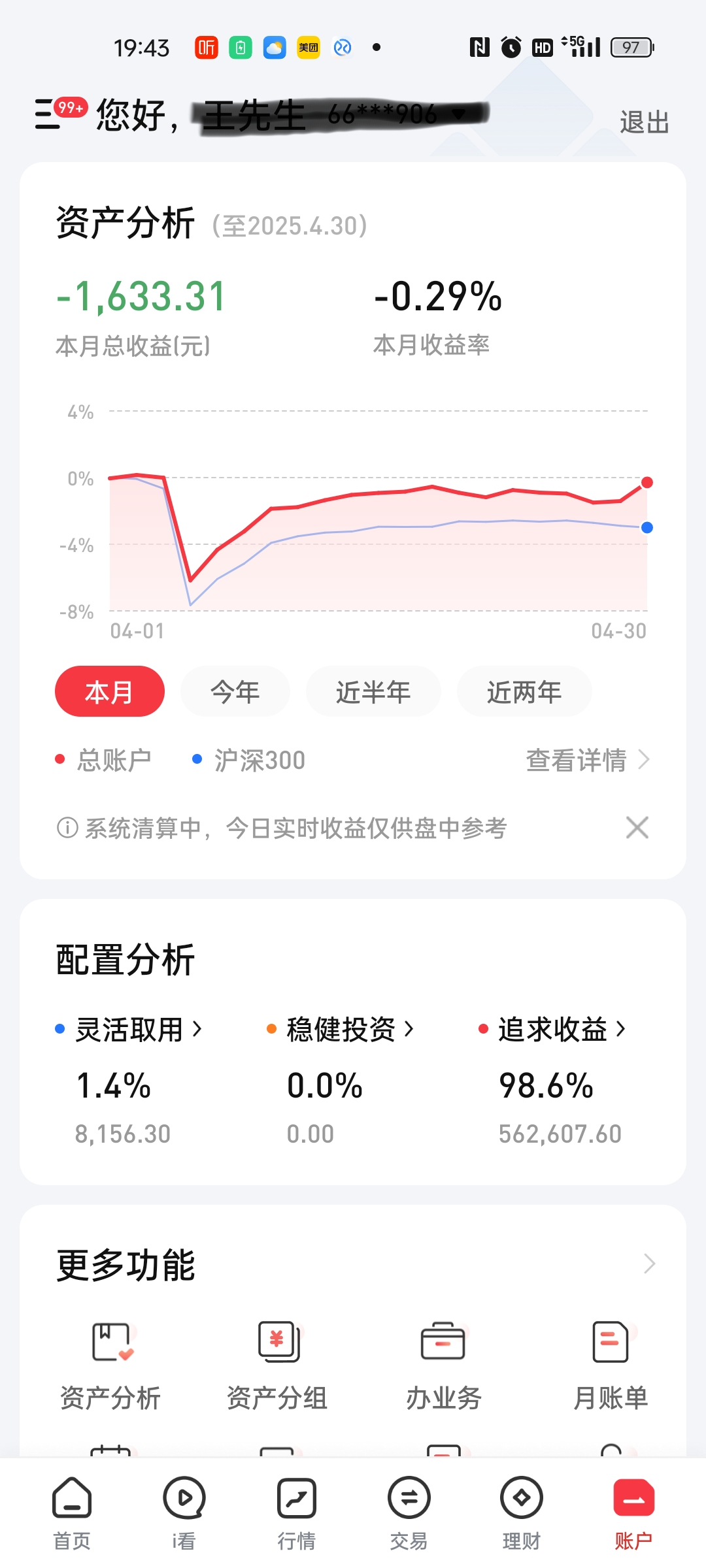 2025年4月收官。本月账户收益-0.29%。大盘-1.7%。账户年收益-2.81%,大盘-2.17%。