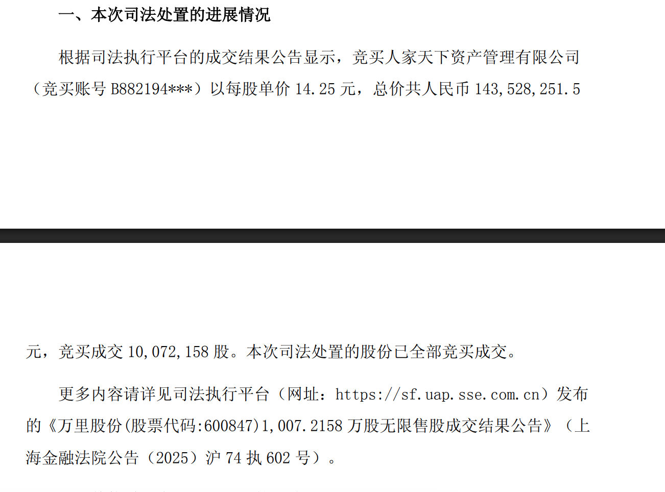 万里股份大股东拍卖取得了6%多的股份是不是要触及全面要约了,他本身原先就持有28%多了?有没有懂的看看