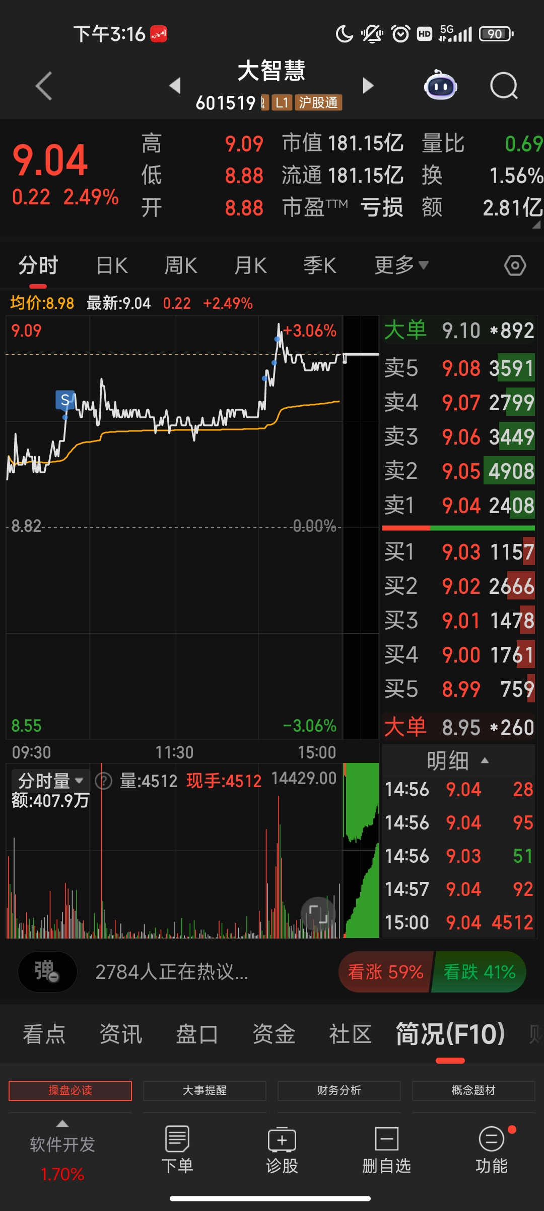 \ - 大智慧当前股价8.82元,理论套利空间为: