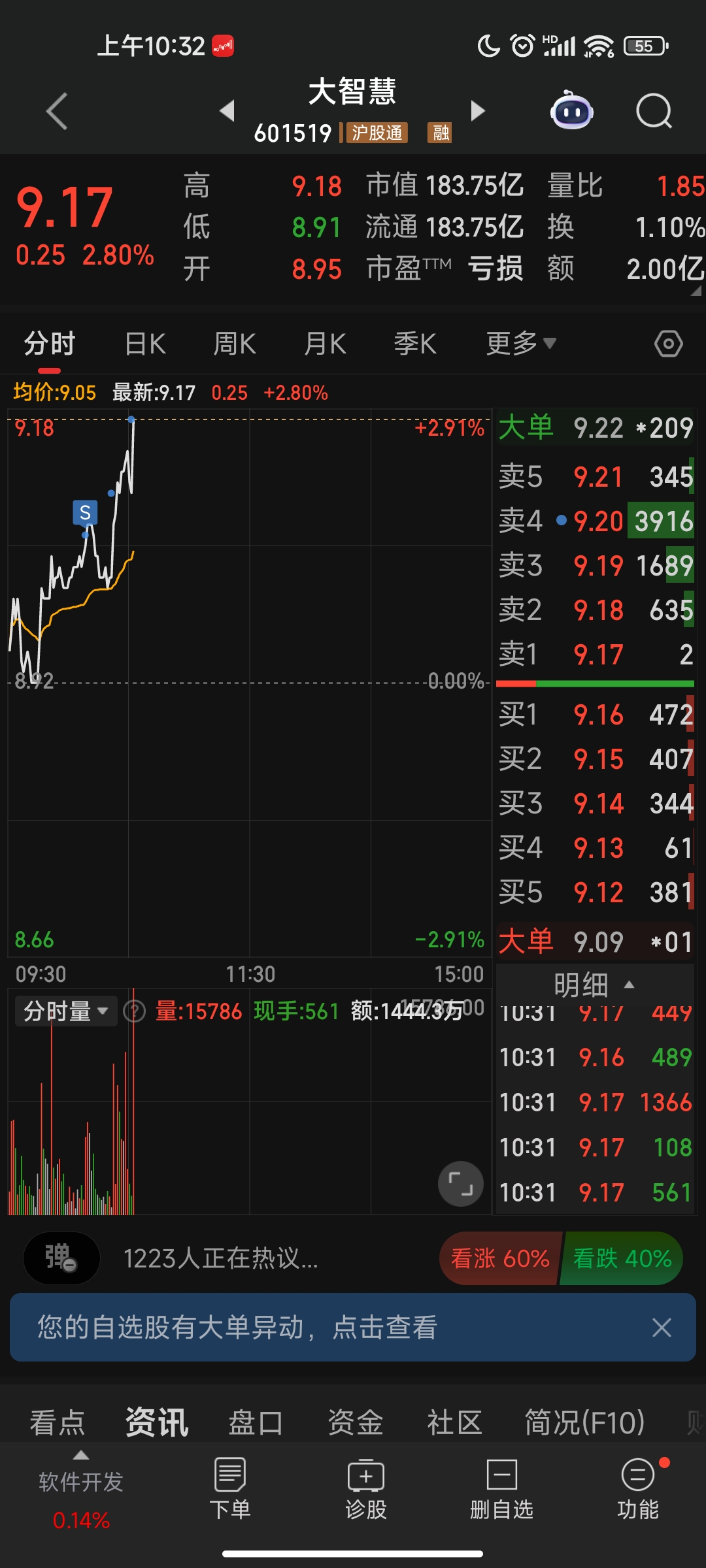 - 核心逻辑:大智慧当前股价为8.82元,低于现金选择权行权价9.53元,理论套利空间为: