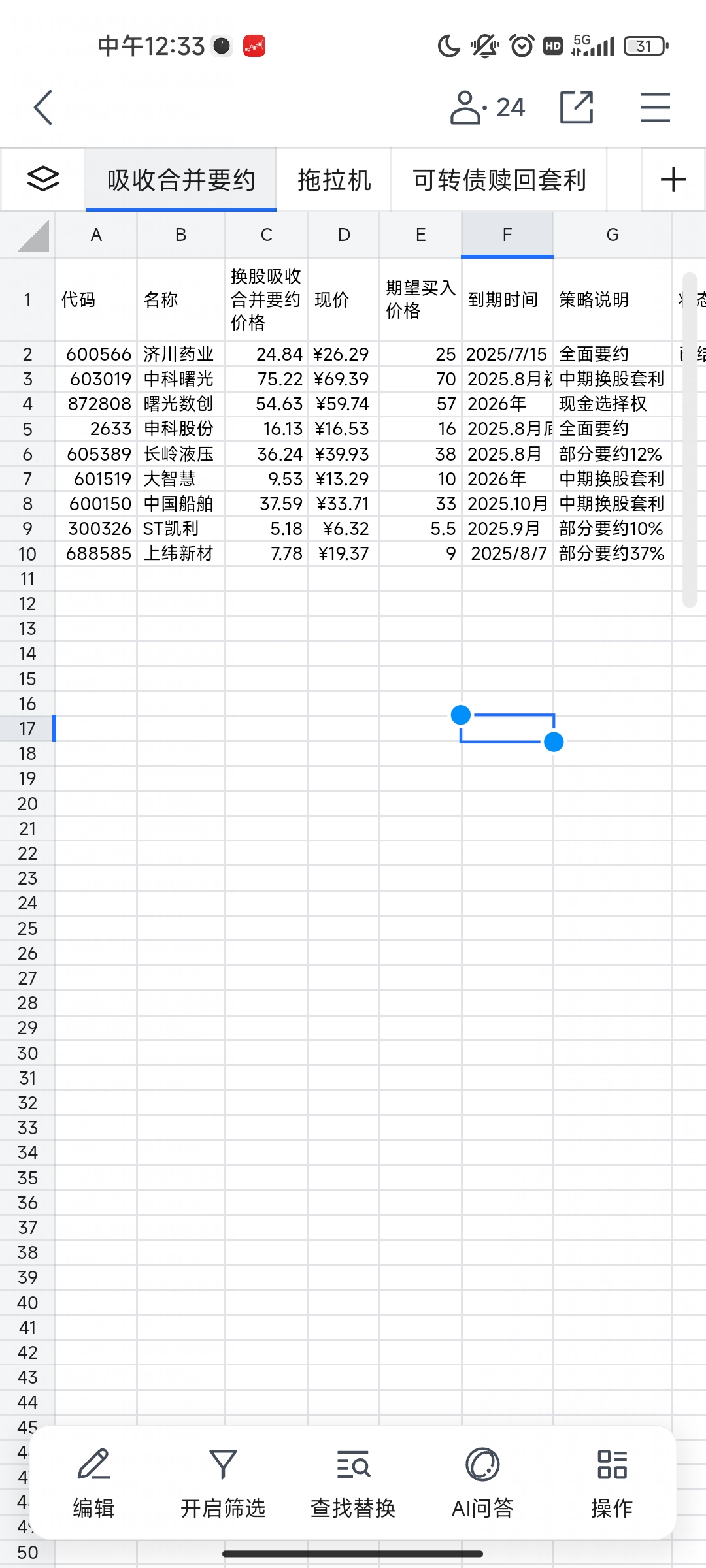 其实我还收藏了不少可能会实施要约的股,比如顾地科技因未履行要约收购义务被证监会责令改正,但大股东估计没钱了所以一直没有下文,我都准备删自选了。