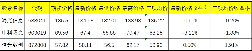 海光信息、中科曙光、曙光数创这三个吸收合并或要约类品种,其实都是一家人,但又各有特点,集友们也各有所好,这个案例值得研究。我个人今天买入了少量曙光数创的观察仓。海光曙光系列,短线(1周)的结果出来了,结果十分明显: