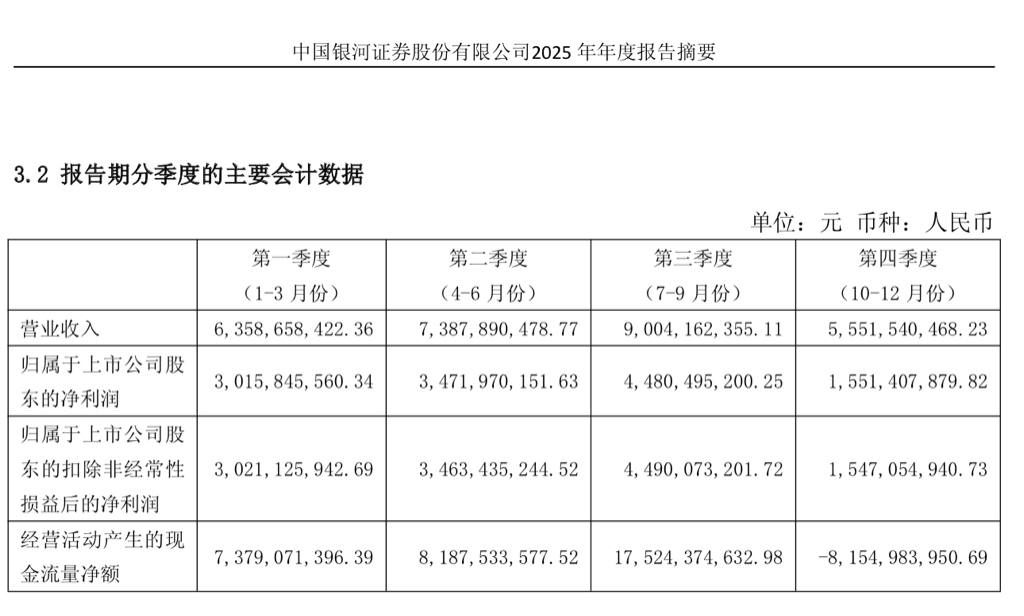 报告:观察到中国银河四季度净利润同比、环比均大跌