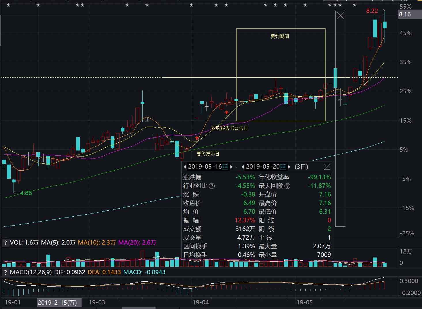 参照上图,我个人对那段时间的股价走势与要约的关系是这样理解的: