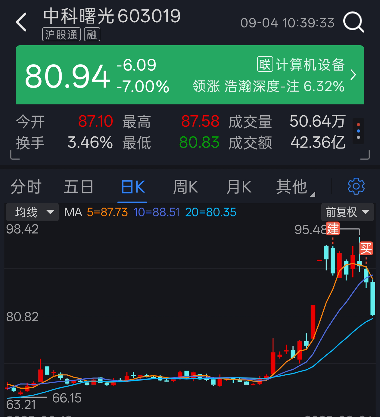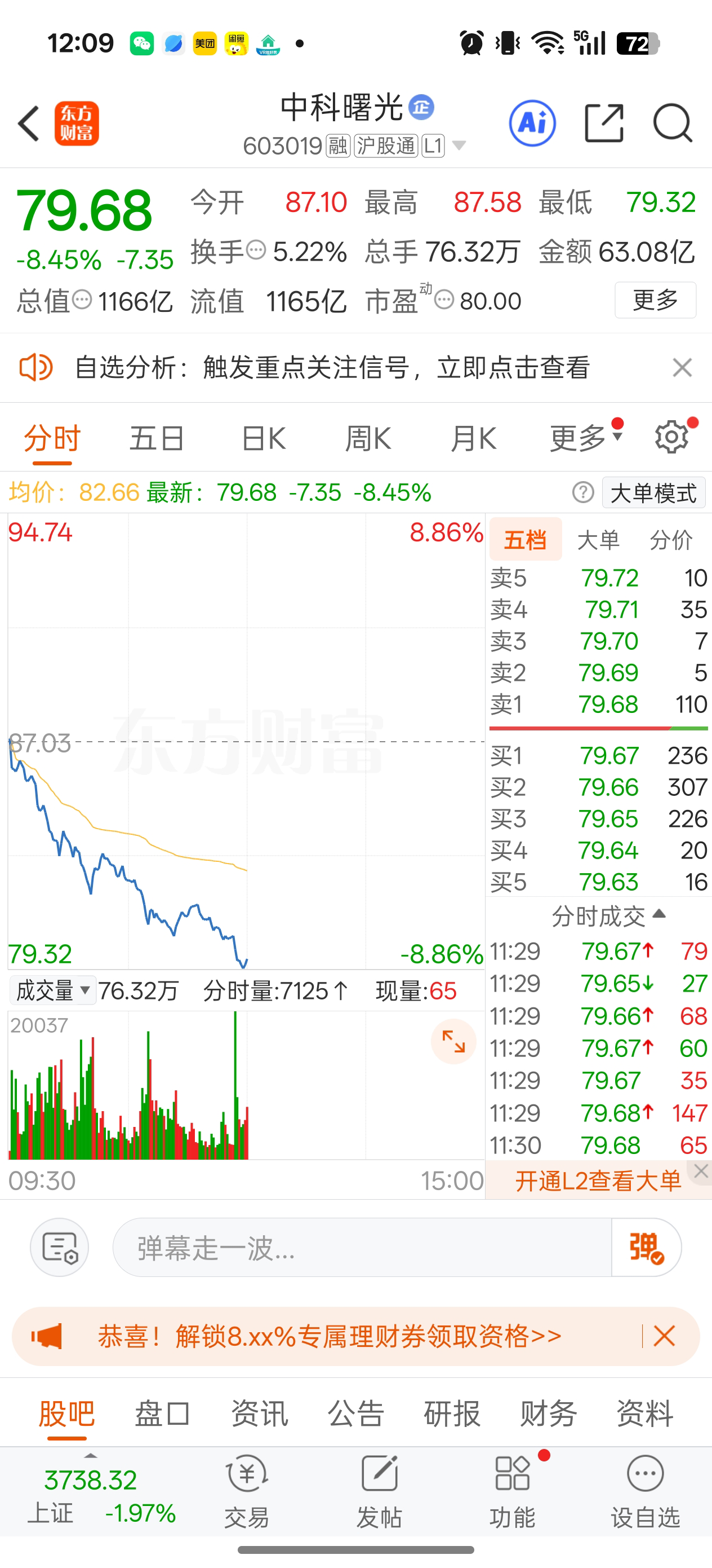 中科曙光的确定性大概在66-70左右的价格,这个价格位置持有的话再跌也跌不到哪里去;后面能不能继续向上要看趋势,你可以根据自己的理解看着处理吧。