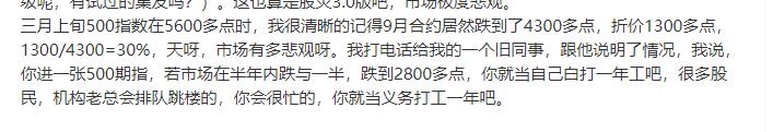 蛋总主业是期指是知道的,我是认为23年大盘应该优于小盘,从IM撤回,转战中概、股票底仓打新、偏大盘LOF套利。我的期指策略就是长持吃贴水,短线试过,就是在给大佬送钱。如果方便,是想了解蛋总回归期指是有什么预判。