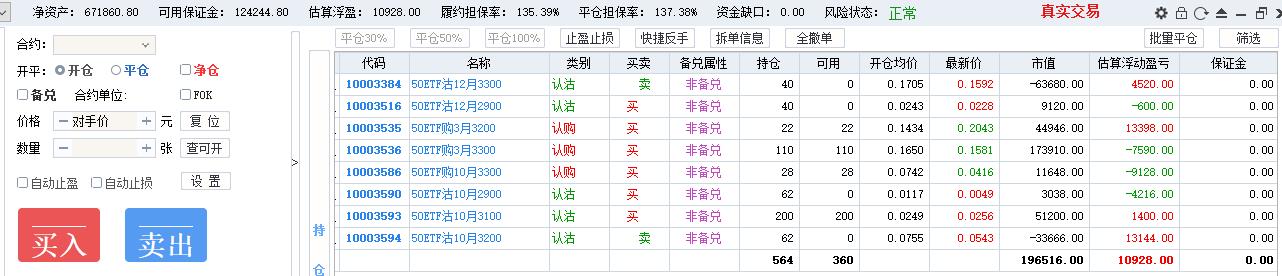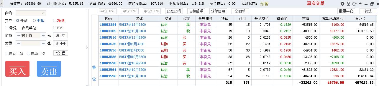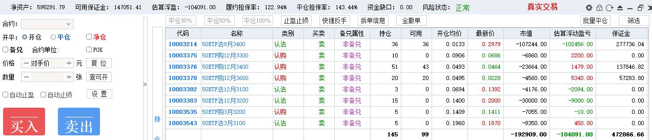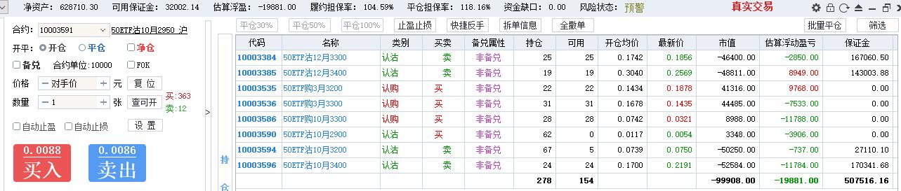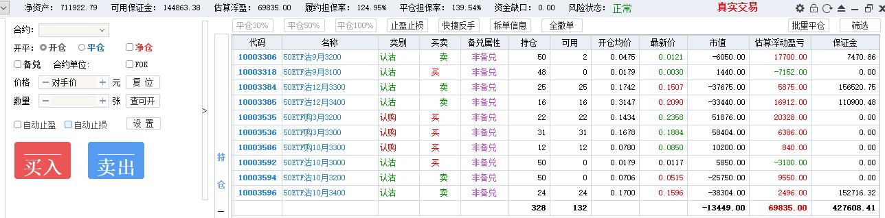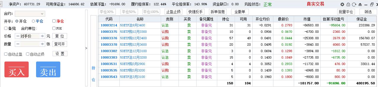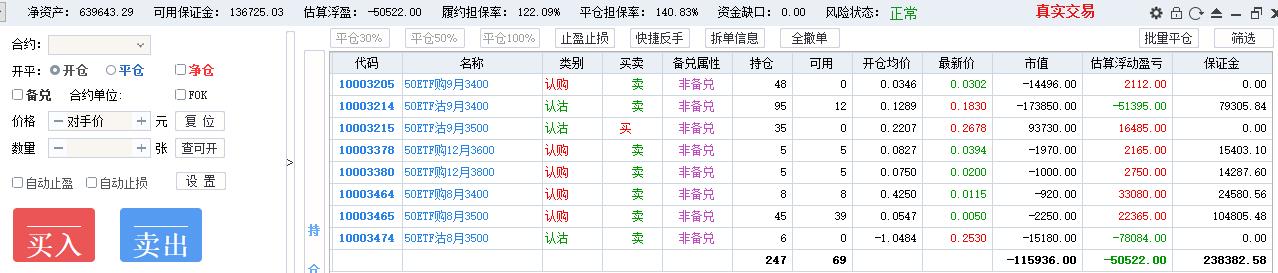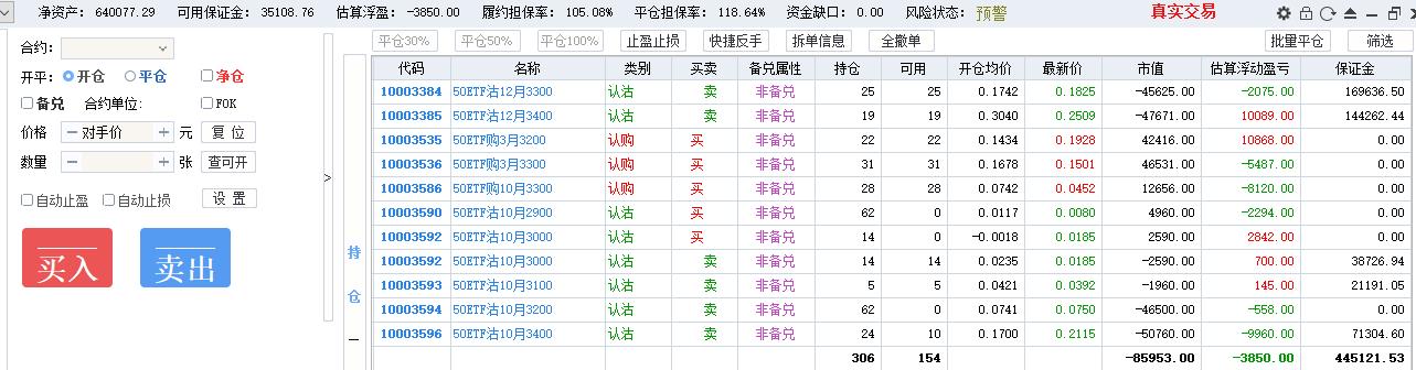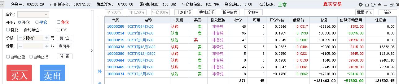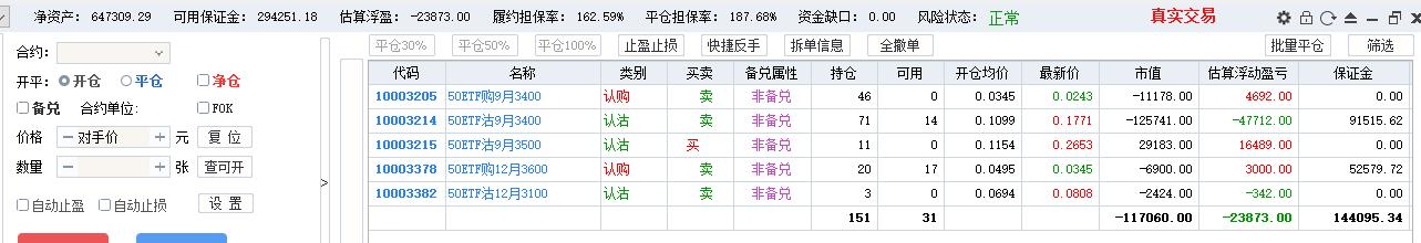 50期权当月卖购张数太多了,需要往后移仓收编,缩减张数,降低保证金占用,防御风险,下周一先不处理9月卖沽,把八月卖购与12月3800卖购全平了,换入15组12月3600卖购