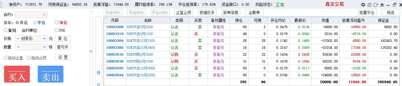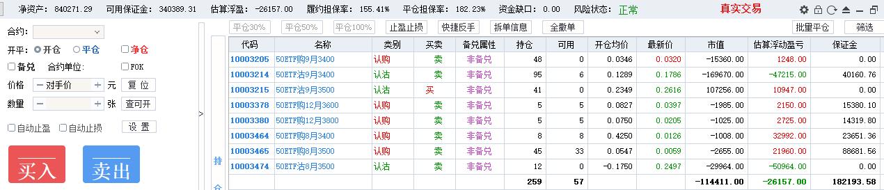 如果是为了降低风险度,逻辑上应该平仓8月3400卖购,按照市值开9月3400卖购的张数,张数做个缩减,不应该等数量移仓。还有就是一次性移仓数量过大,还是应该分批移仓。