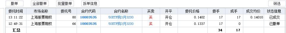 当前持仓95张3月3258A 买购, 12月 135张 卖沽。还是合成多头的姿势。 90张废纸买沽,按归零算了。