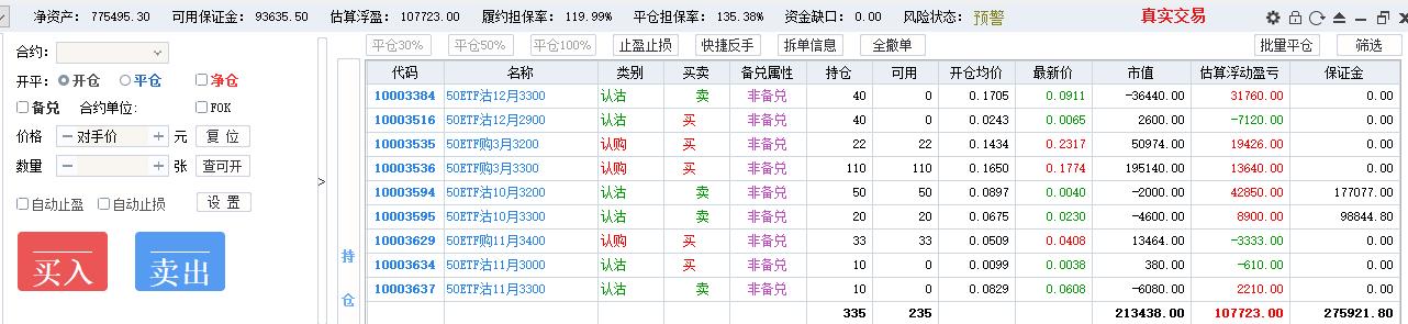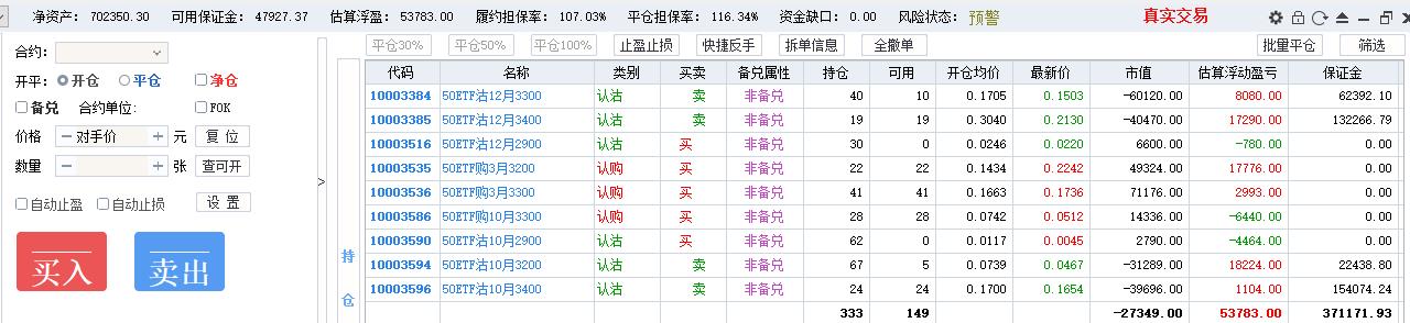 4月 补充了年终奖,清掉期货账户残余30万,转到账户2做 认沽牛差,一直到10月份左右才把期权亏损补回来,还额外赚了10万。