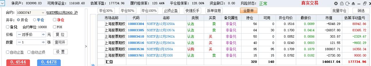 12月也没有太大的调仓动作,本周启动的时候,开了15组3月3258A 卖购 + 12月 3300卖沽,双卖组合,略亏。