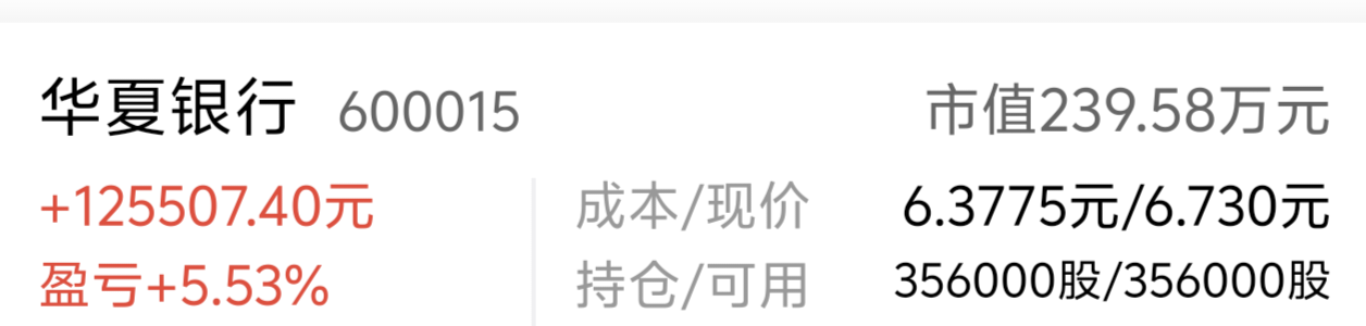 历史操作:2026年2月2日 开盘6.38买入华夏银行(SH600015)