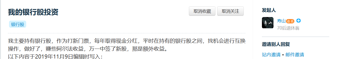 我不是建仓买入以后一直持有收息,有机会也做一些买入和卖出。2018年4月17日在集思录开过我的银行股投资的贴子https://www.jisilu.cn/question/270563,2022年2月20日开过银粉实盘记录https://www.jisilu.cn/question/451293。不过目前不更新了,目前只更新智能件单的成交记录https://www.jisilu.cn/quest...好的**我看到你没更新而且以前老帖子打不开,所以没去爬楼了
