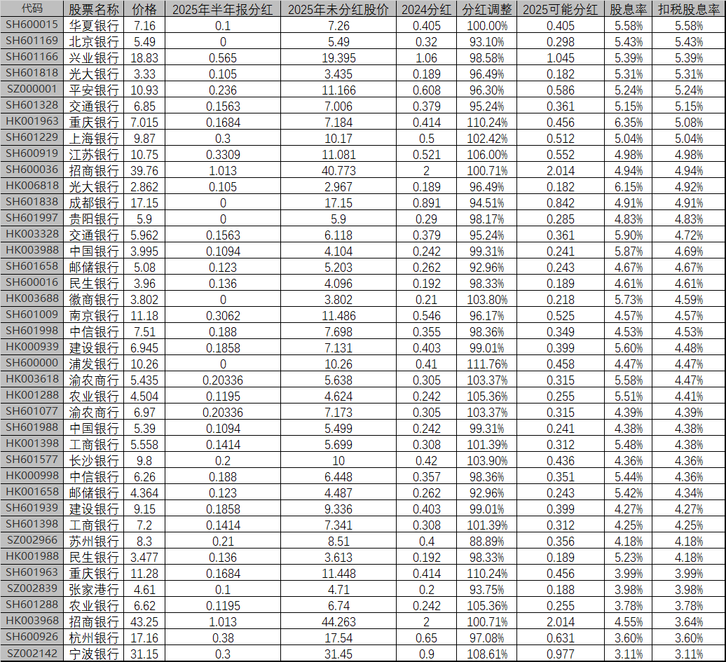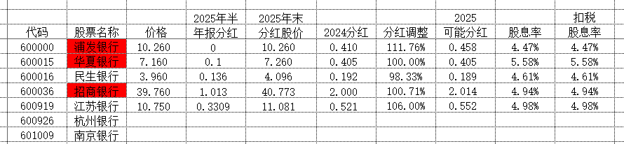 有些行2024年报有快报,2025年却迟迟没有来快报,下表是我纳入研究同时已经出了快报的银行股: