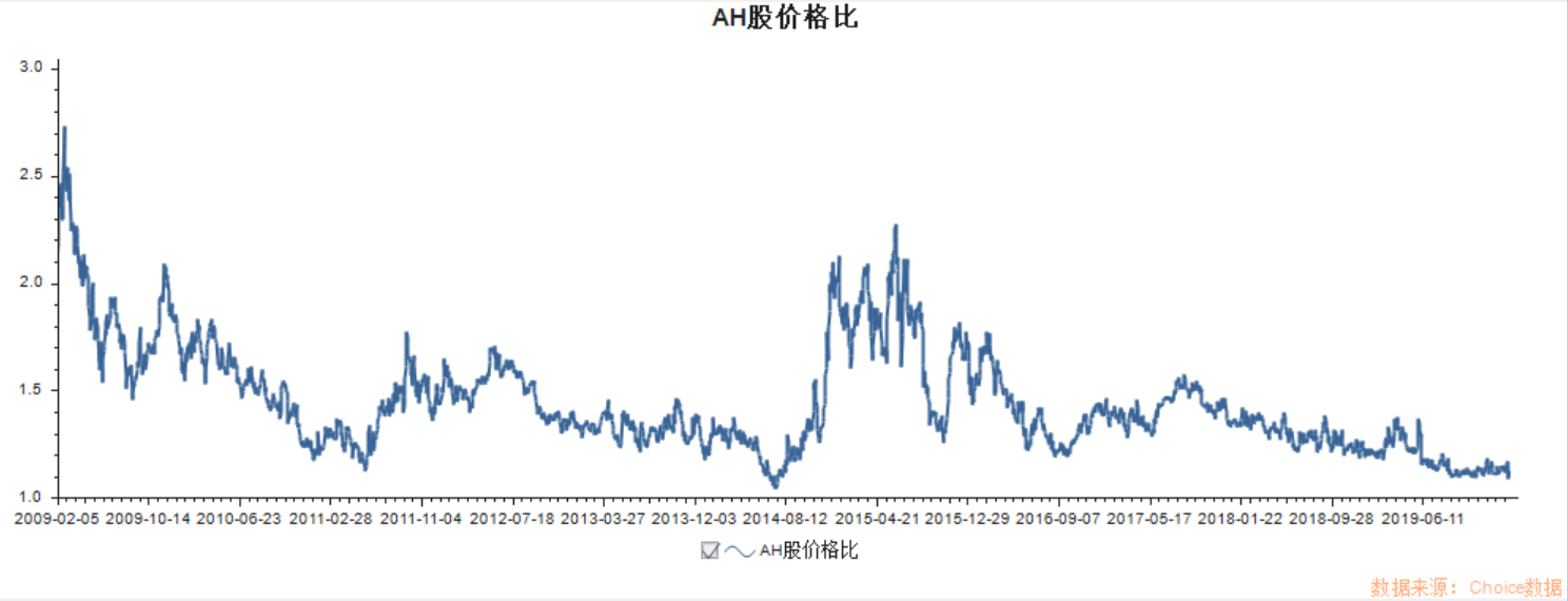 可以看到,该公司当前的A/H几乎是历史最低,只有2014年熊市末期才能匹敌,而且H/A=0.9表明A股的绝对估值相对于H股并未高估。