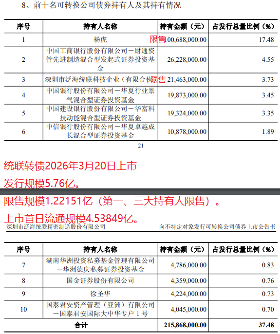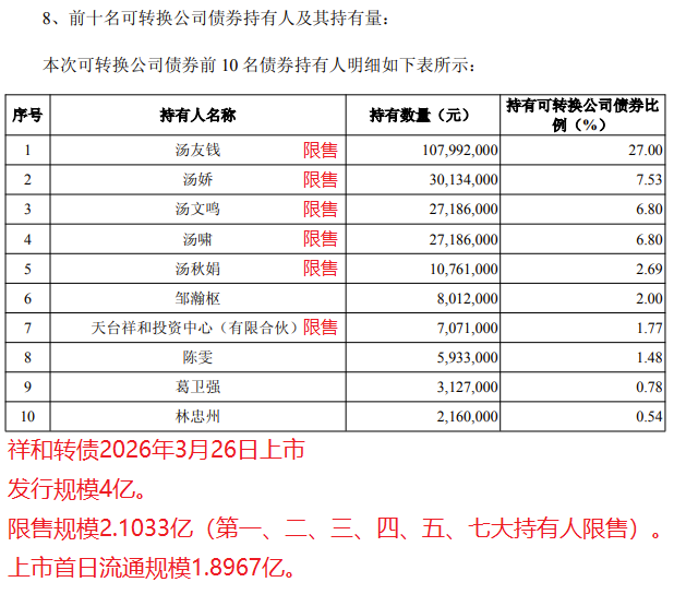 上声电子:苏州上声电子股份有限公司关于上声转债停止转股的提示性公告http://static.cninfo.com.cn/finalpage/2026-03-10/1225001088.PDF公司拟实施本期可转债发行工作,原股东优先配售认购日与网上申购日为 2026 年 3 月 18 日,股权登记日为2026 年3 月17 日,本期可转债募集说明书及发行公告将于 2026 年3 月16 日在上海...300股,9000元的成本,预计上市200-260,盈利1000-1600,这个安全垫还可以。