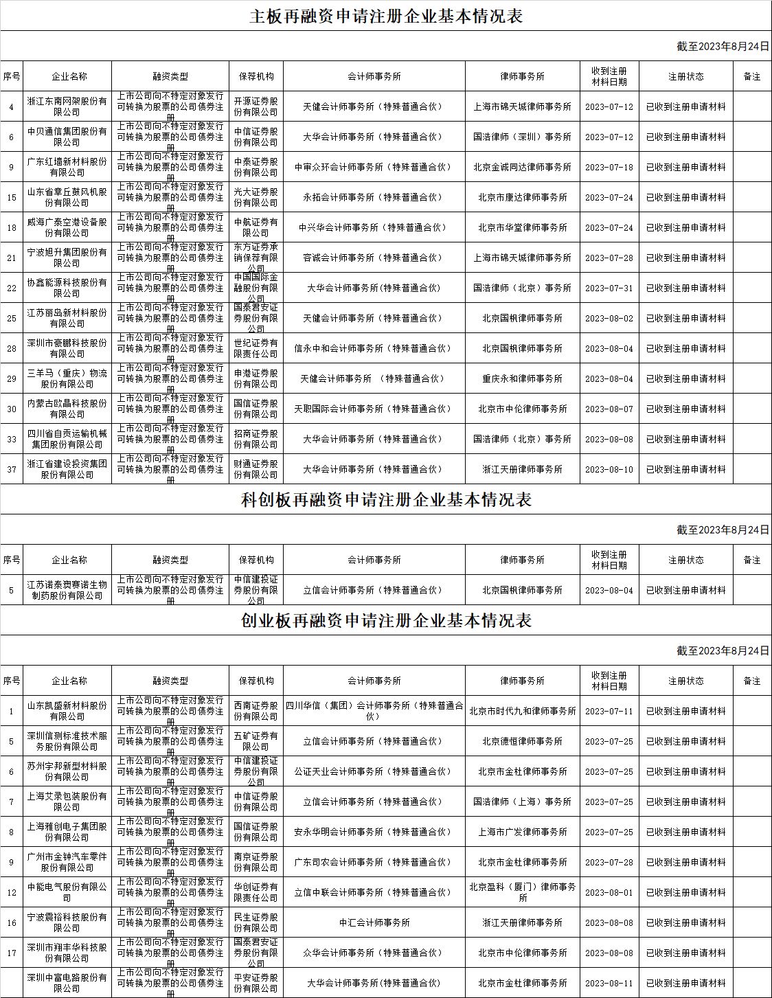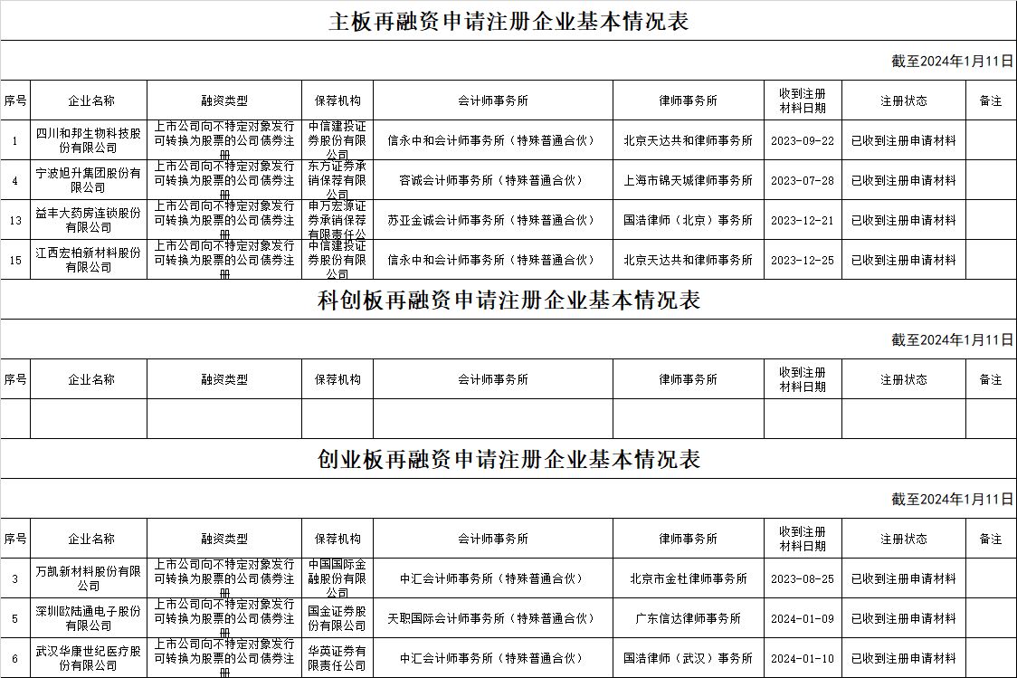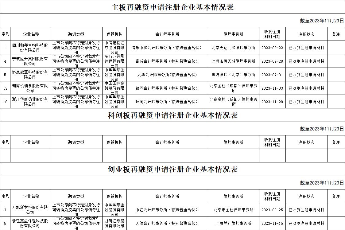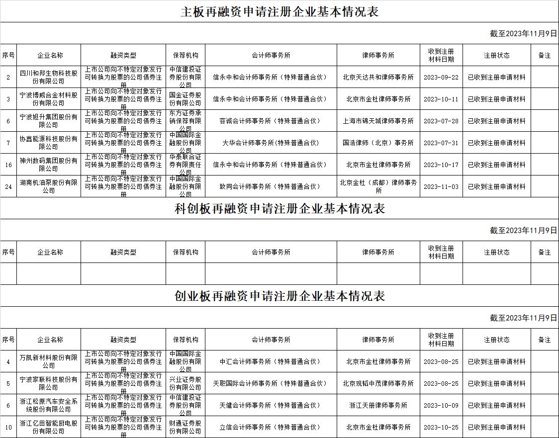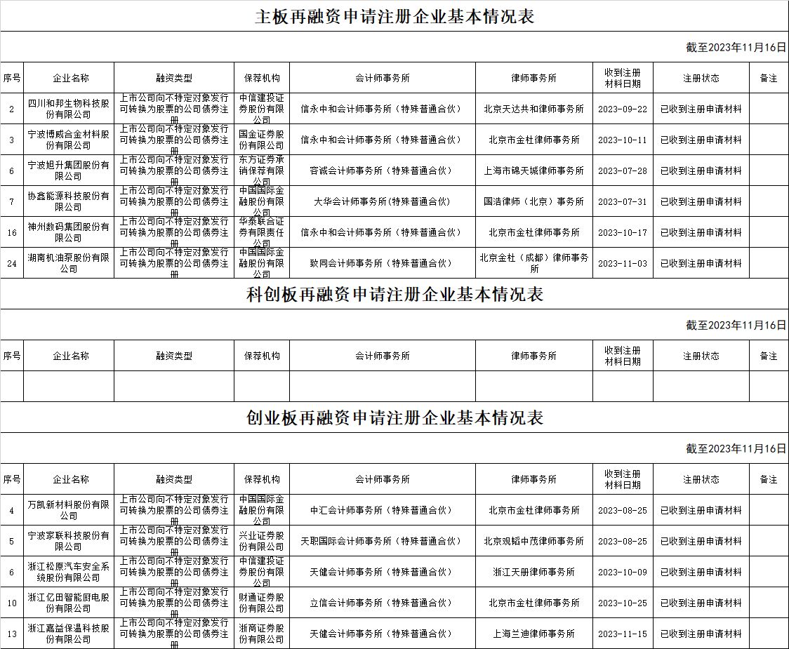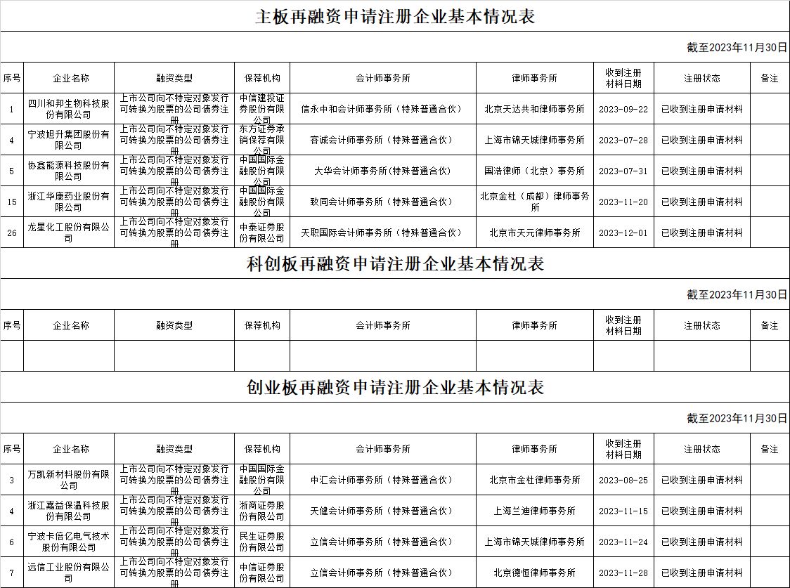 zjh创业板提交再融资注册申请企业基本情况