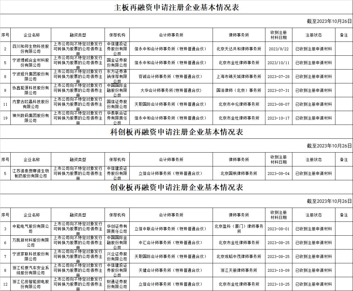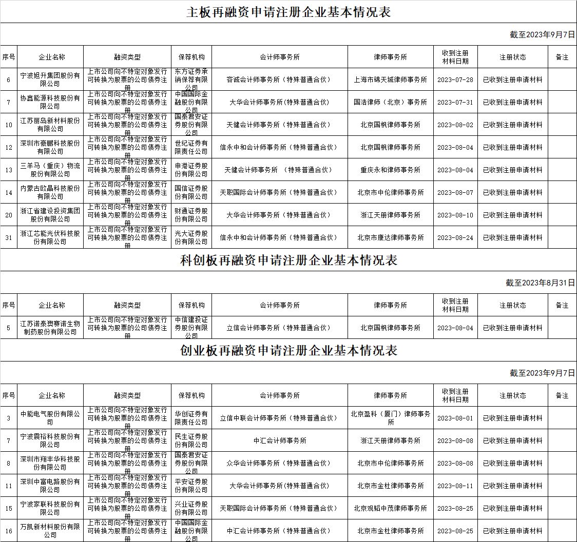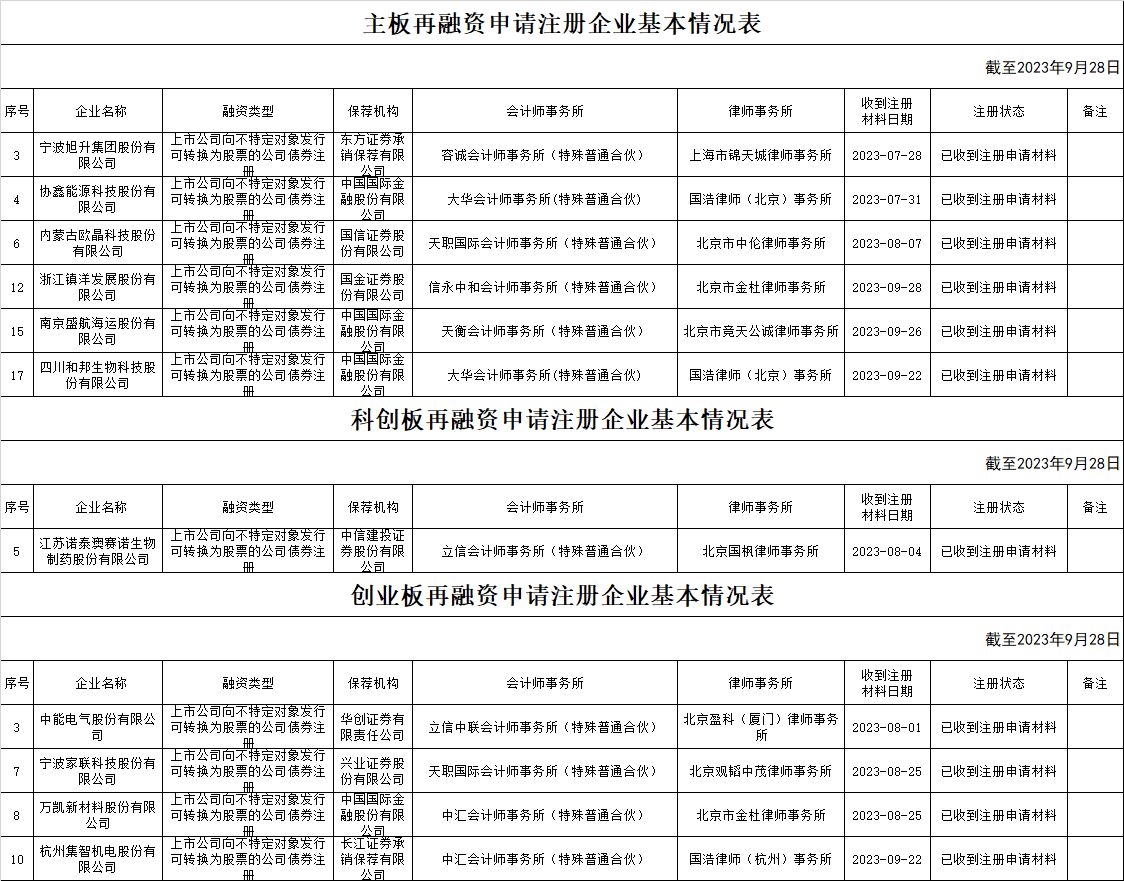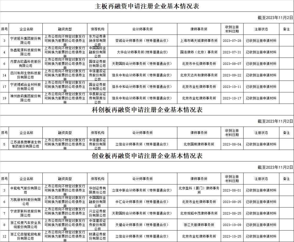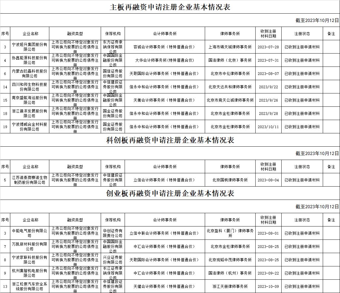 zjh创业板提交再融资注册申请企业基本情况