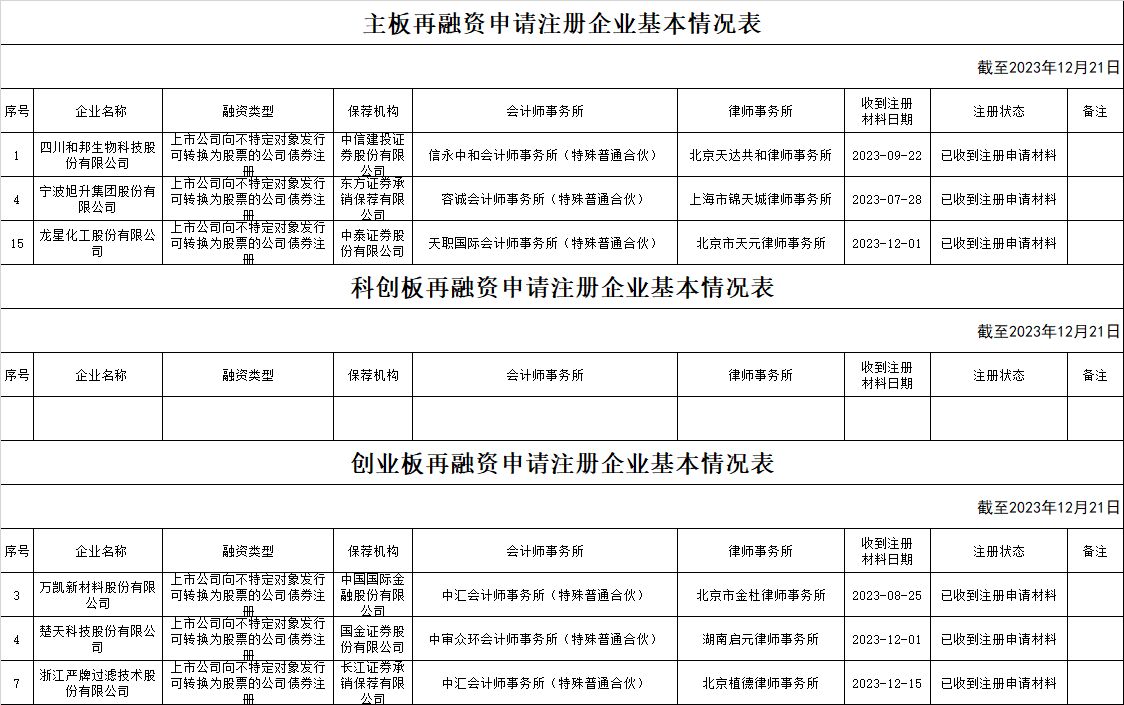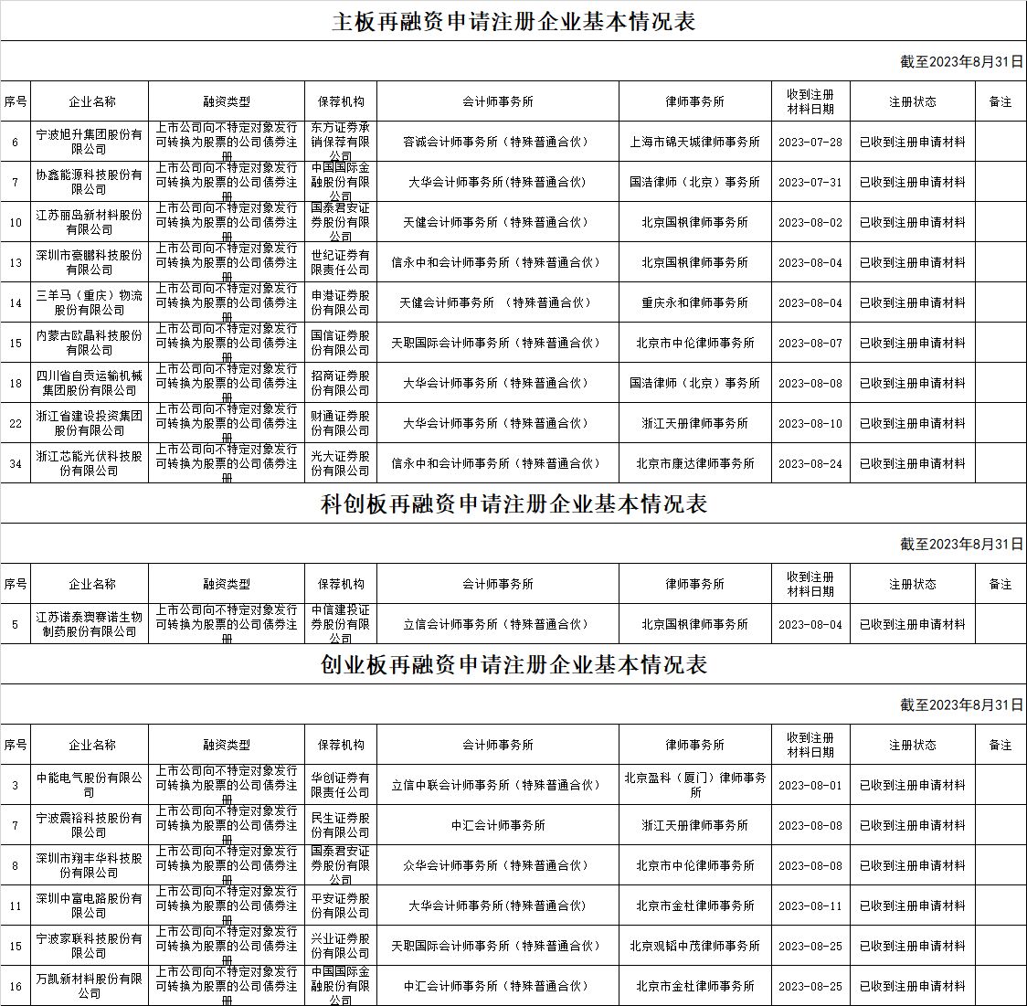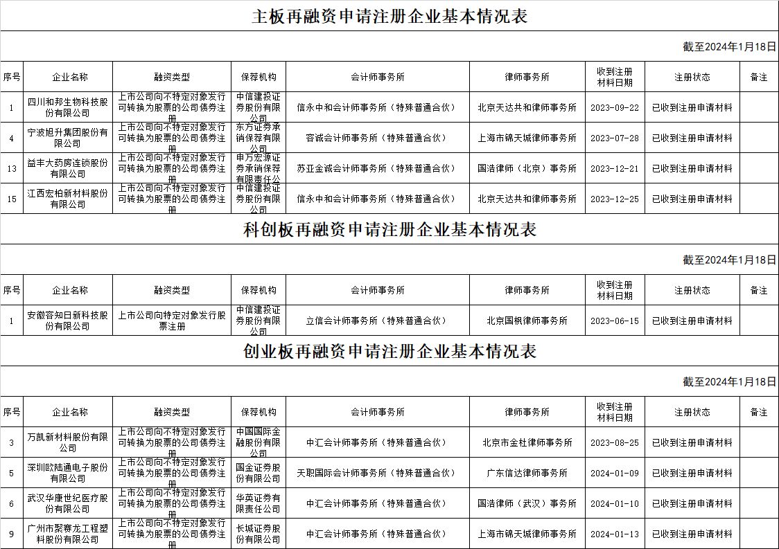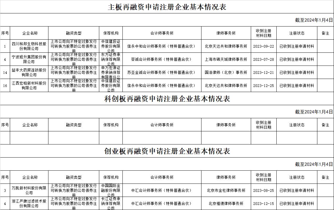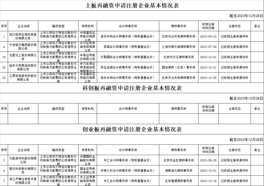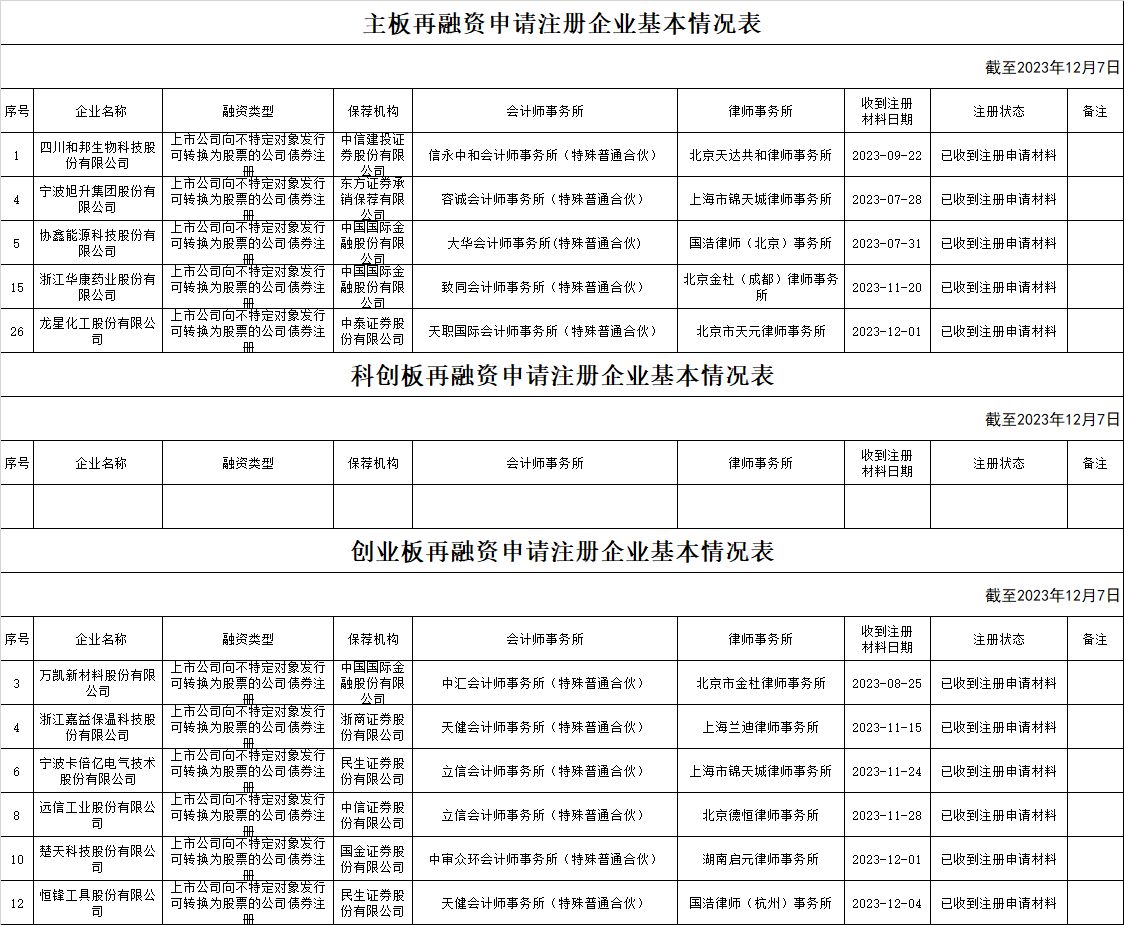 zjh创业板提交再融资注册申请企业基本情况
