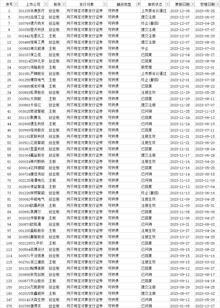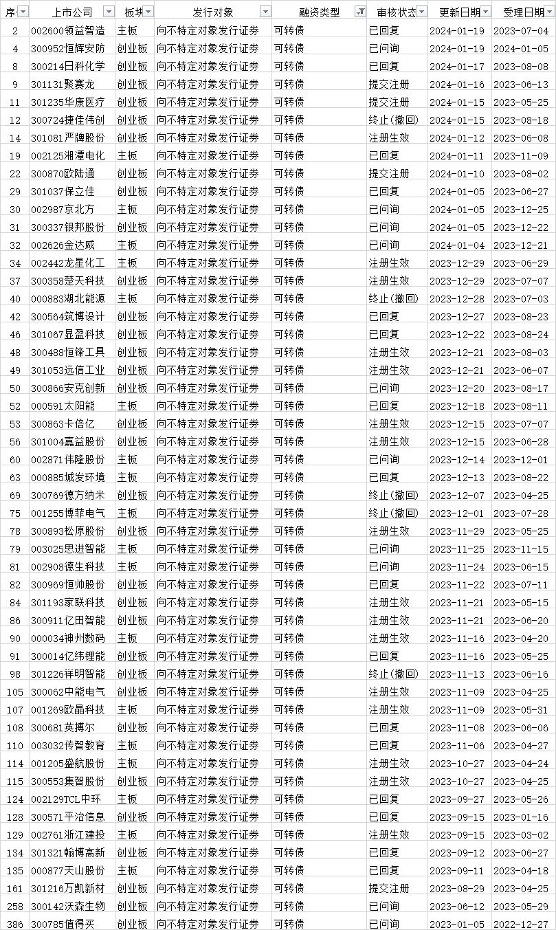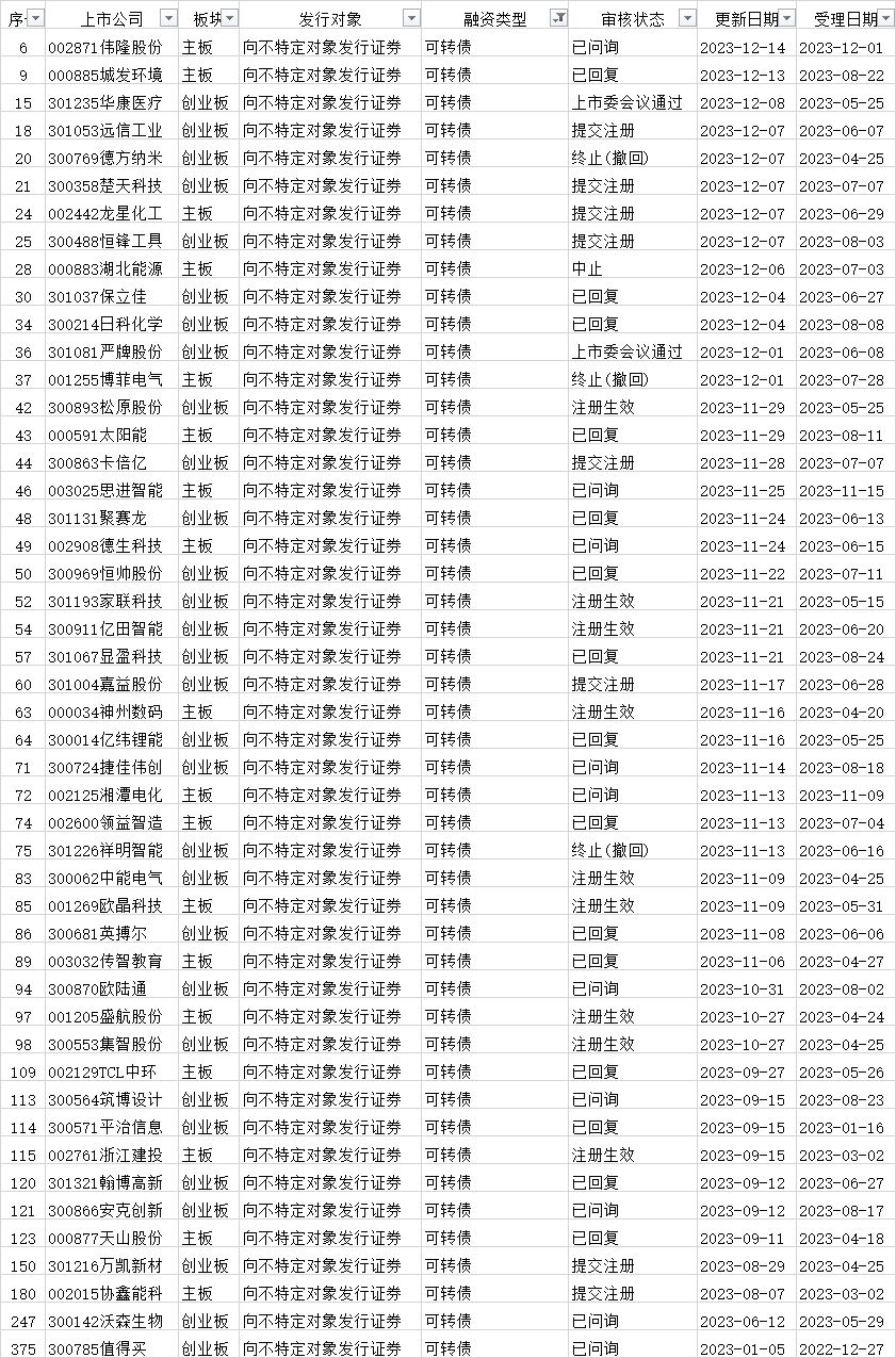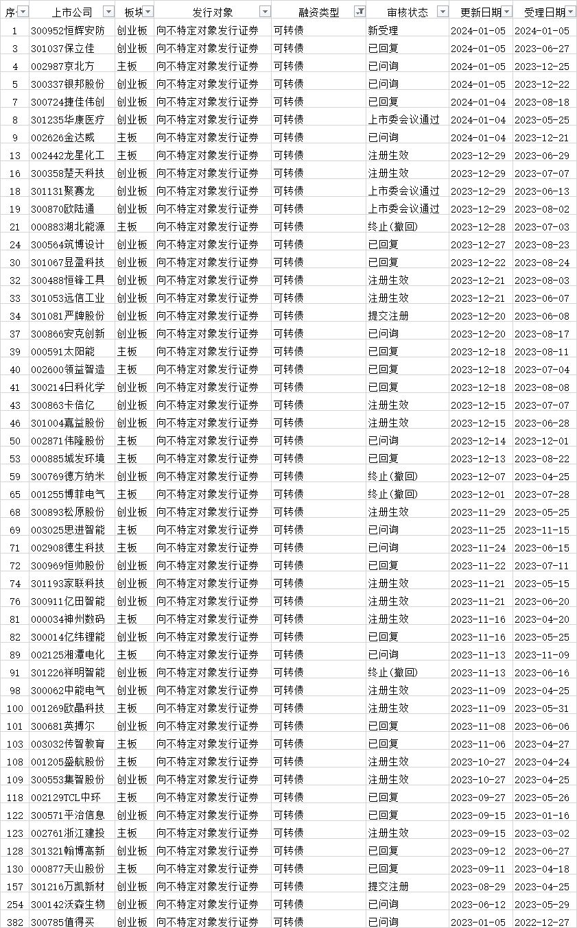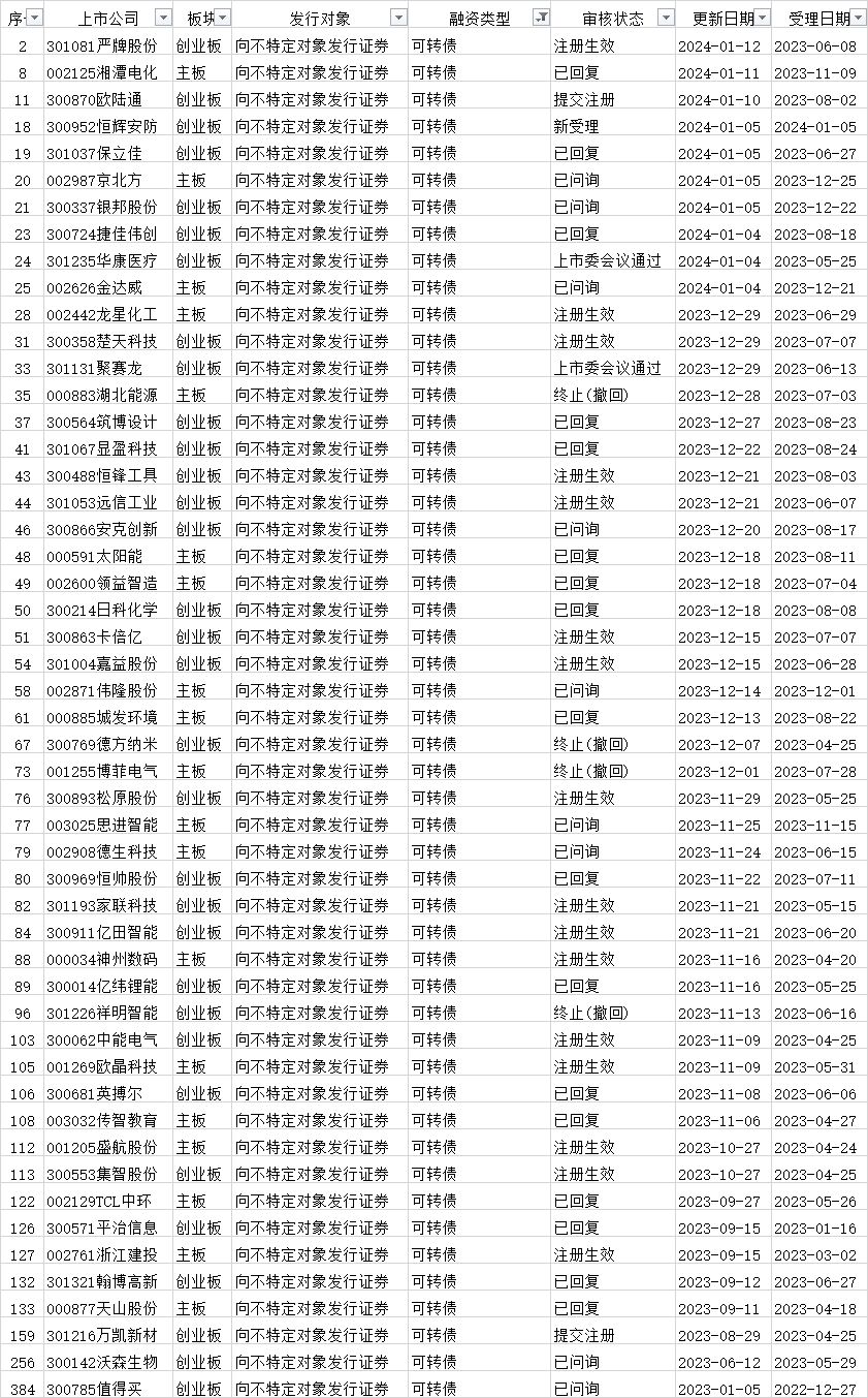 可转债发行审核进度: