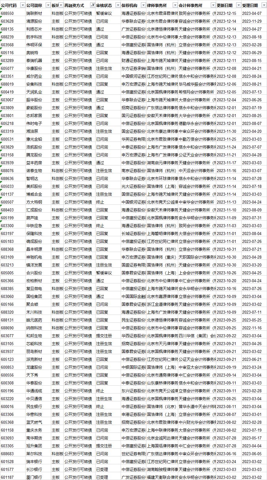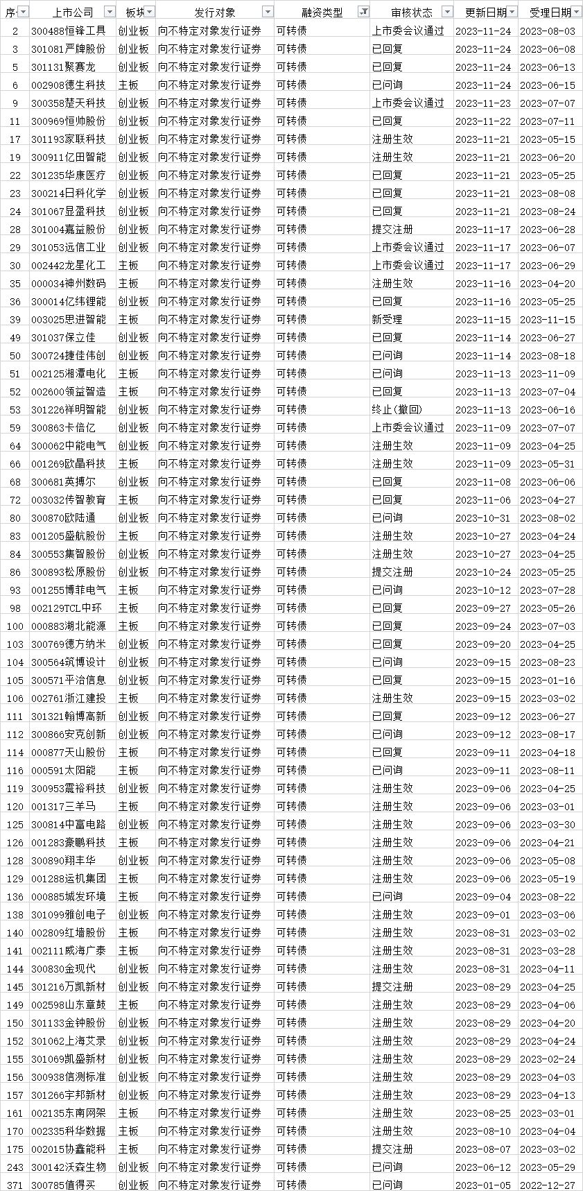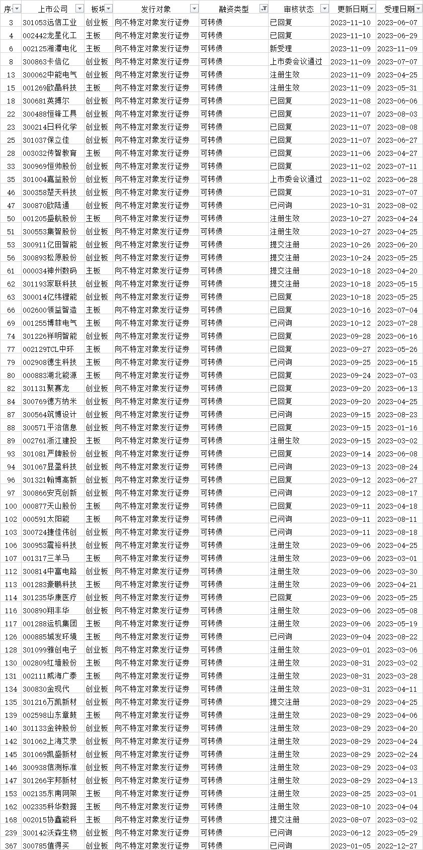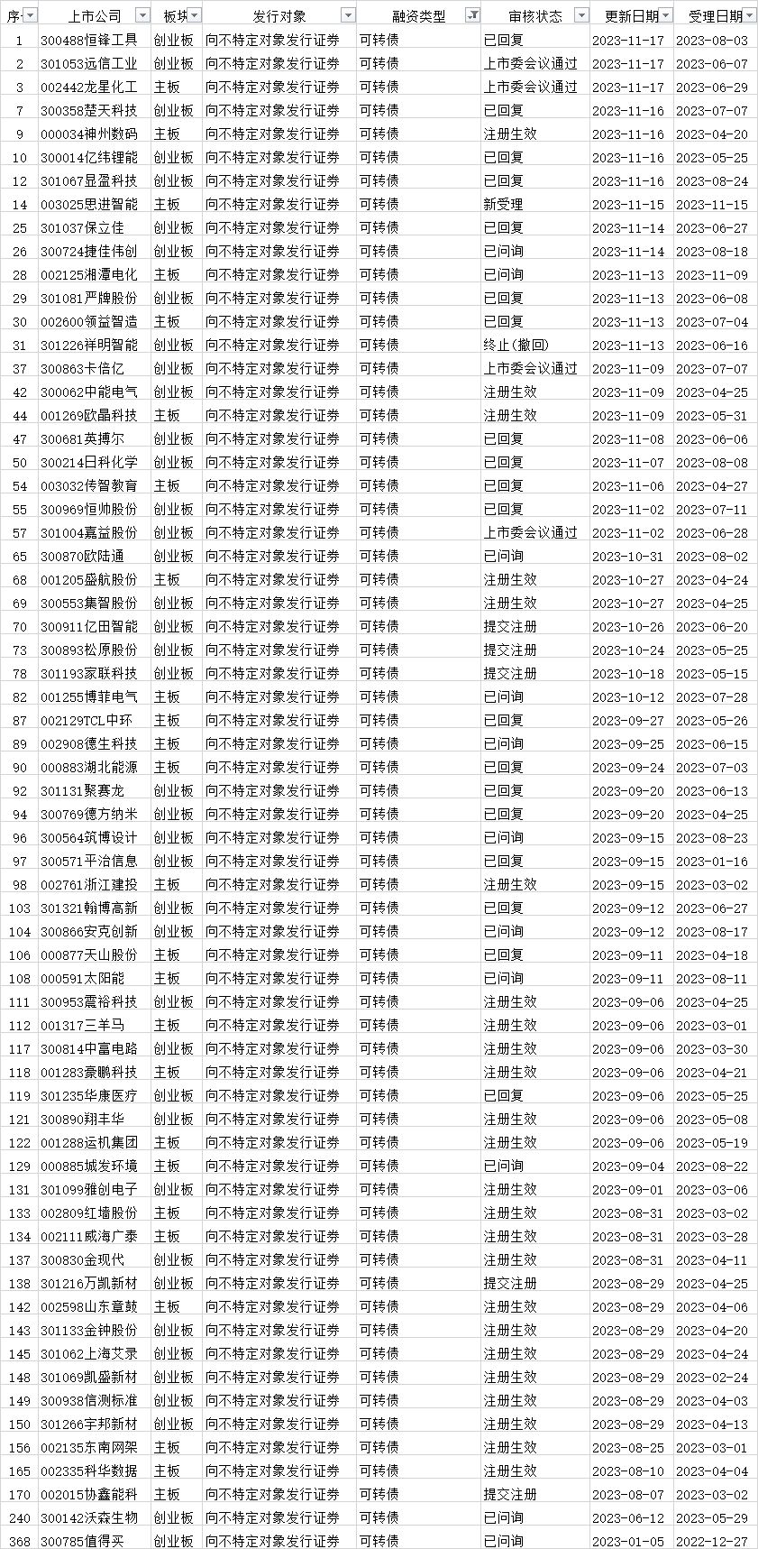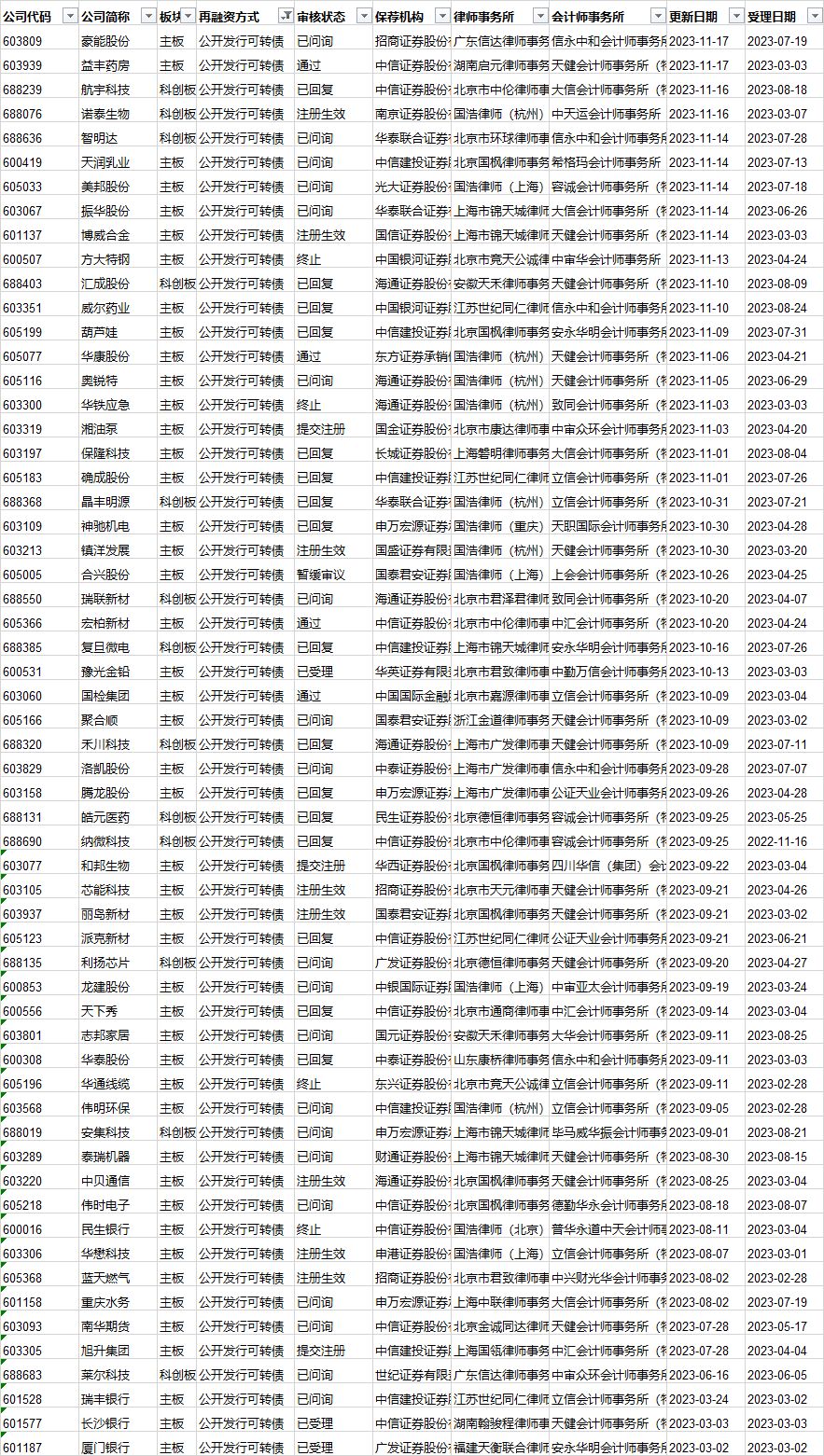 可转债发行审核进度: