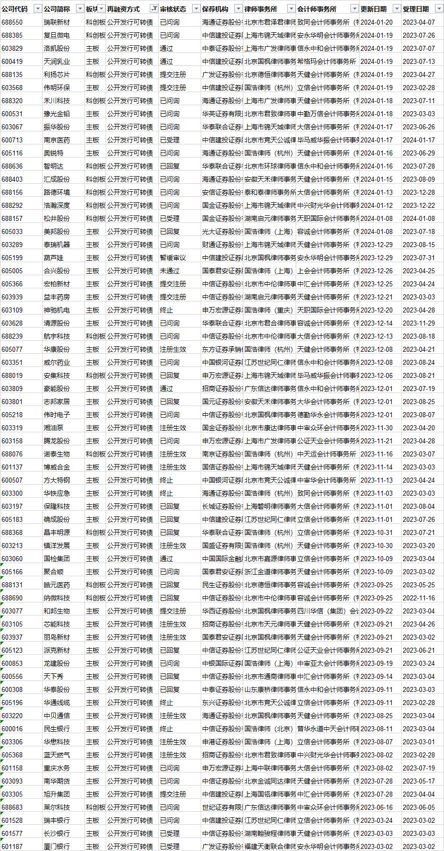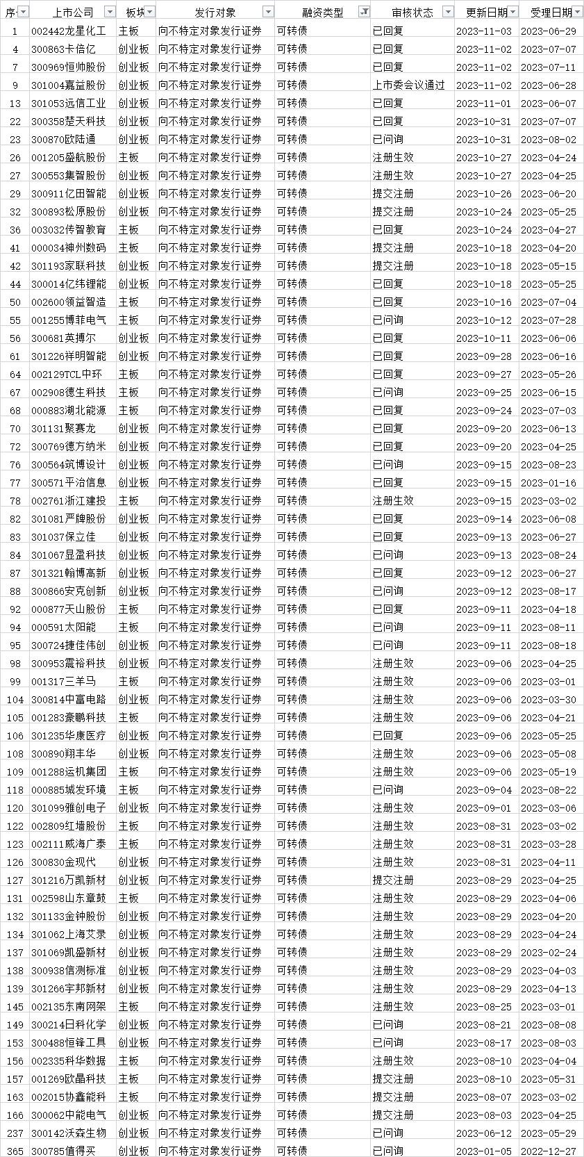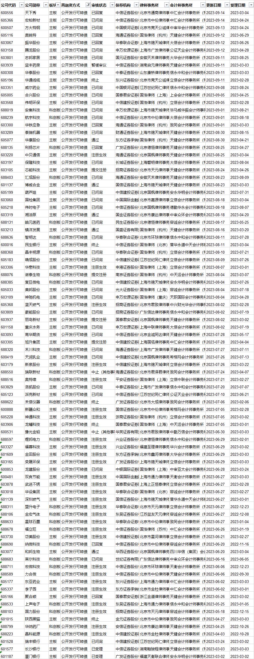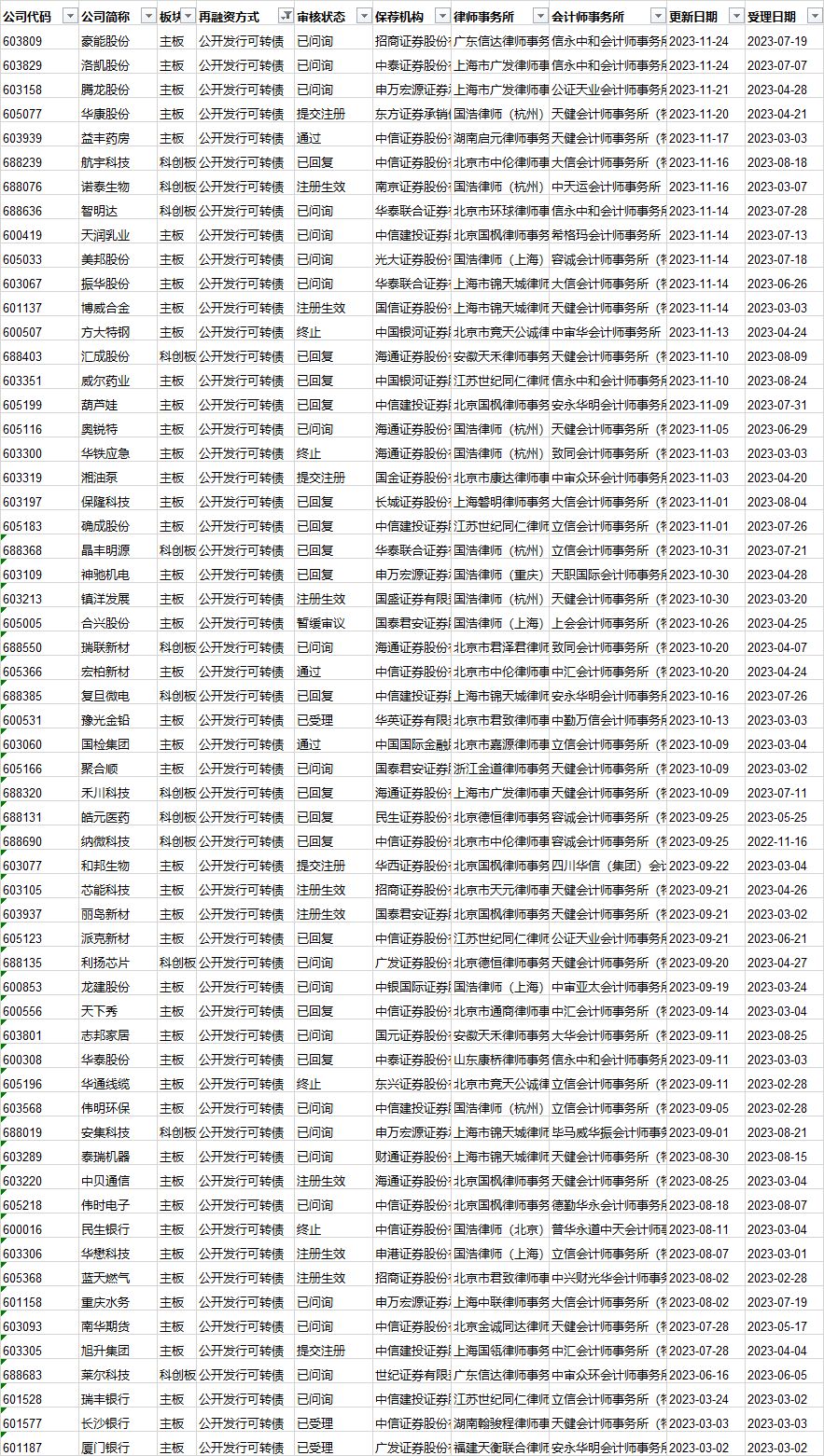 可转债发行审核进度: