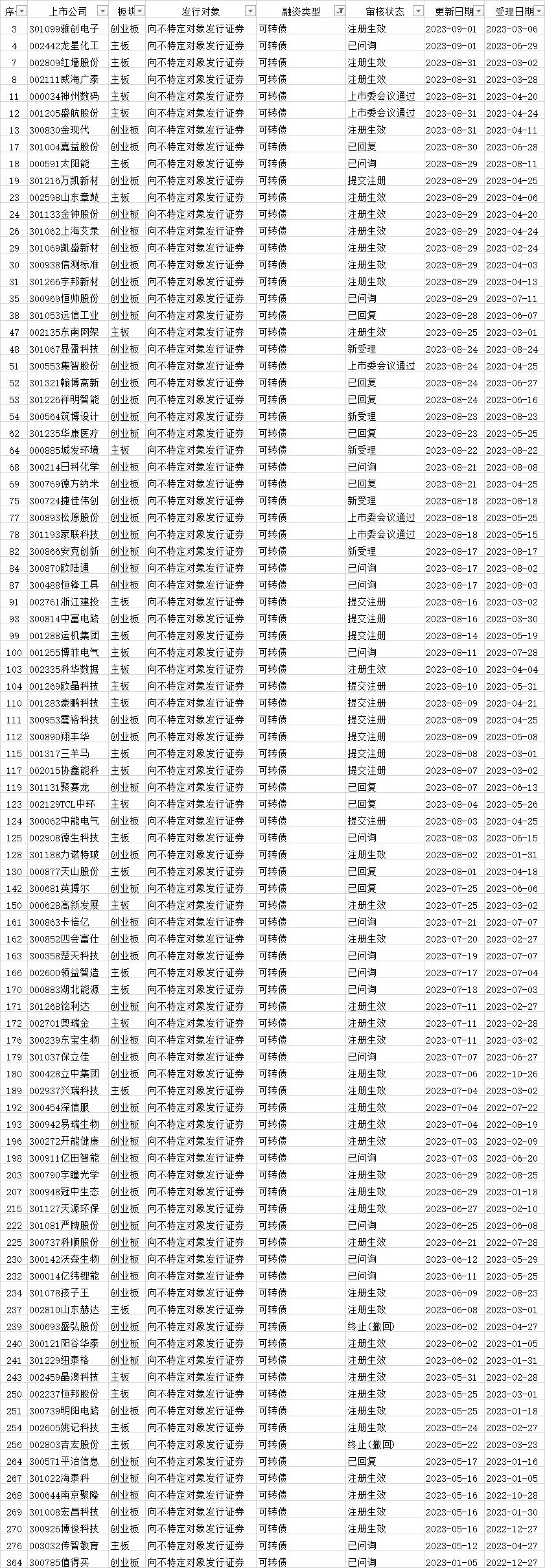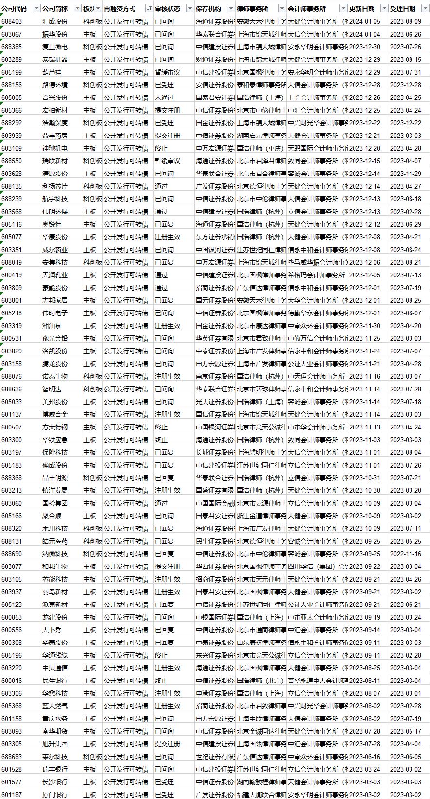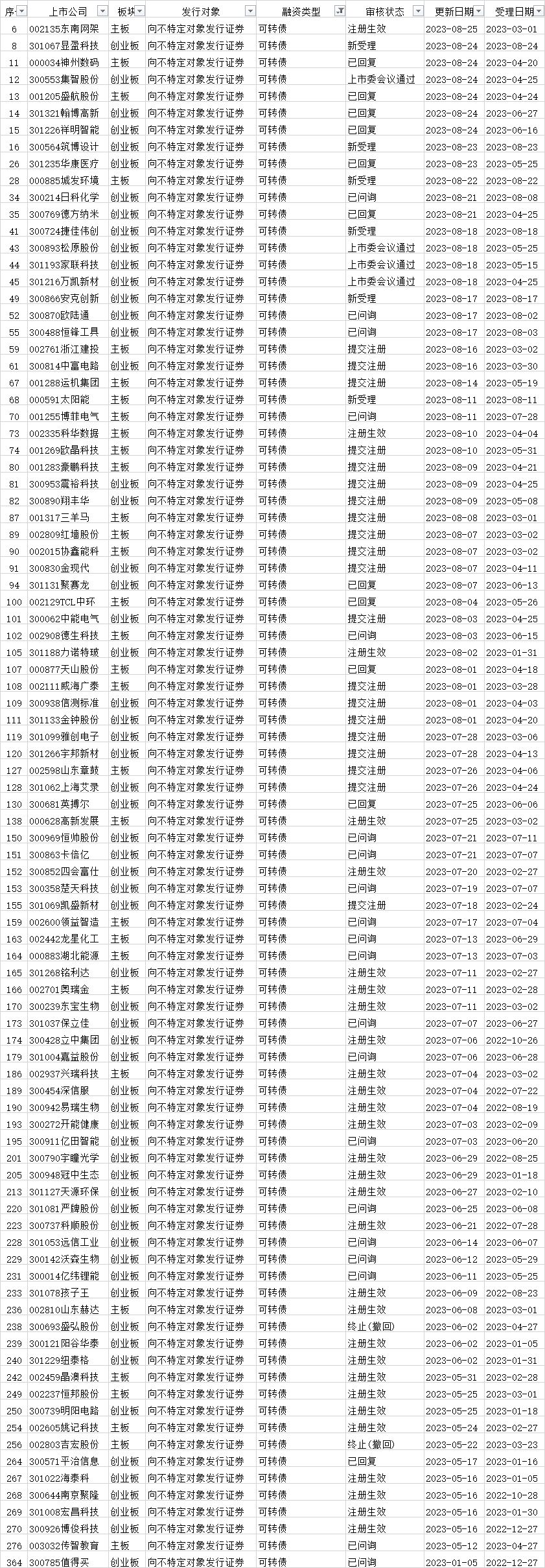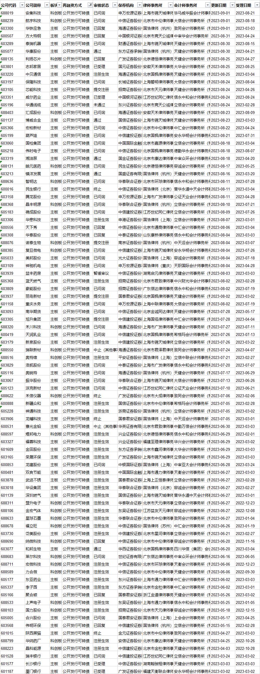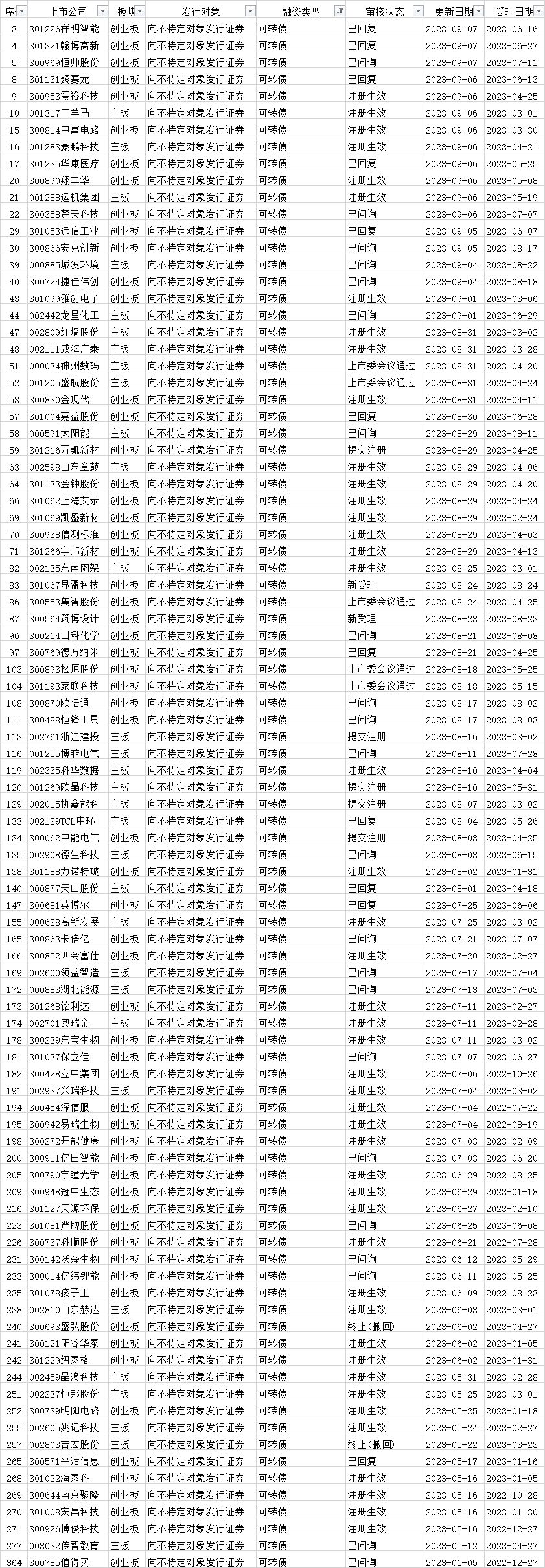 可转债发行审核进度: