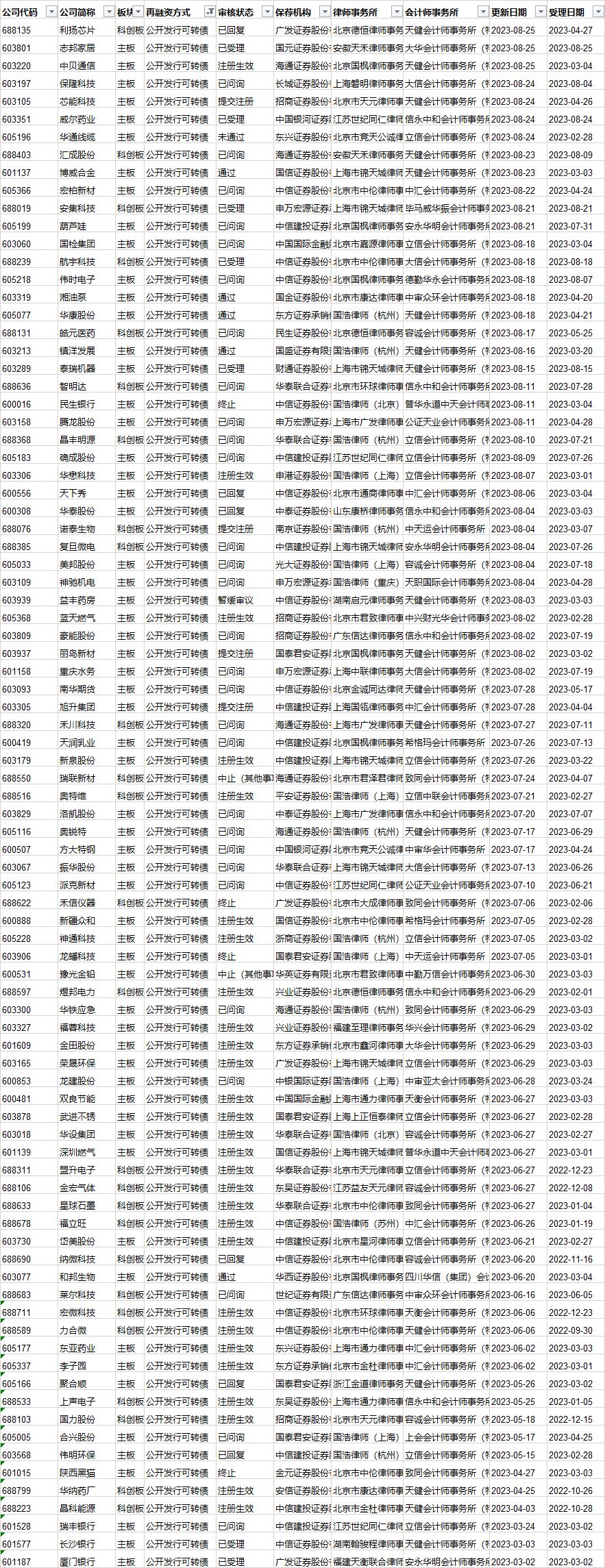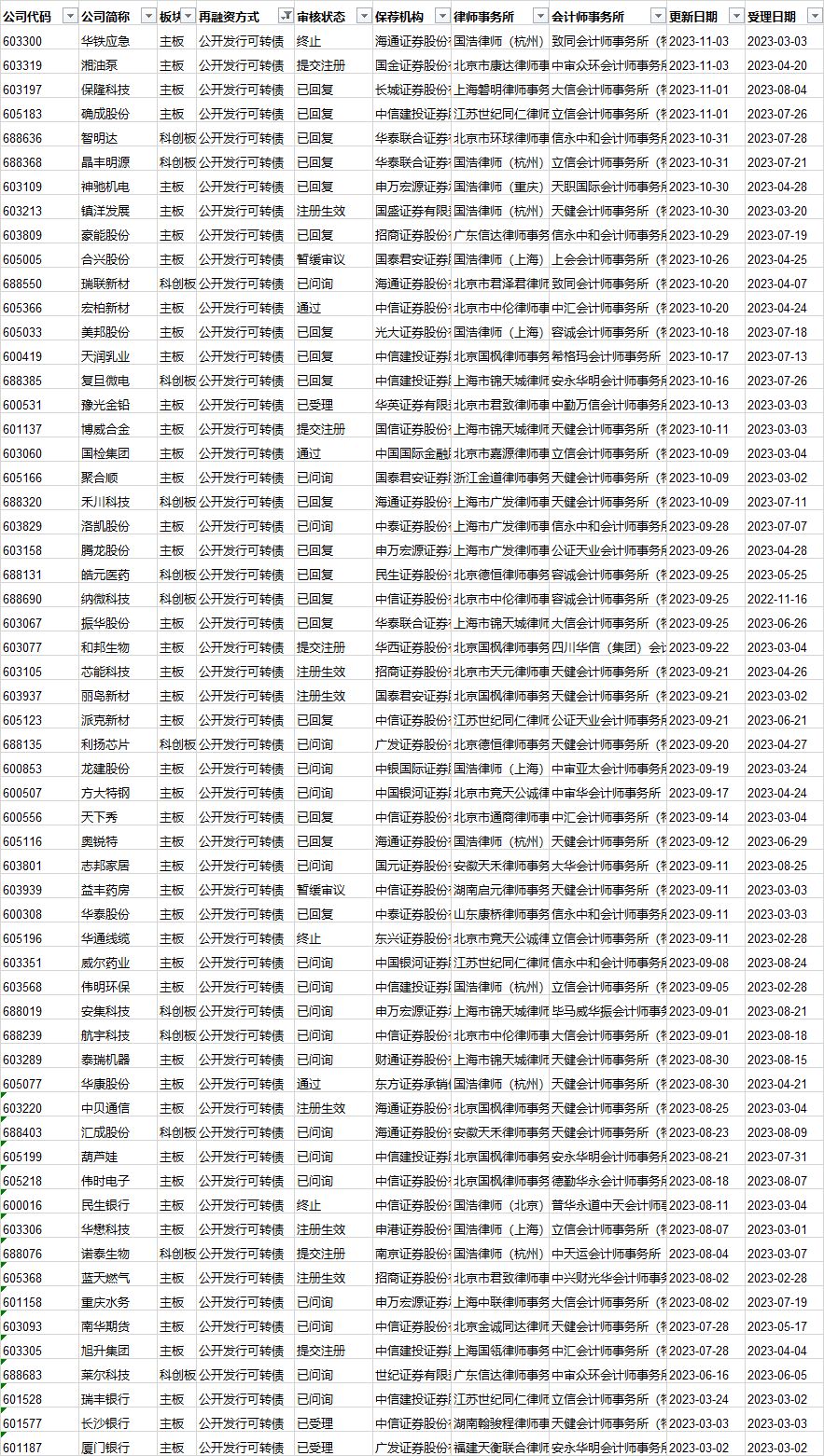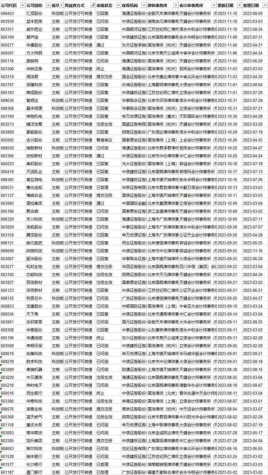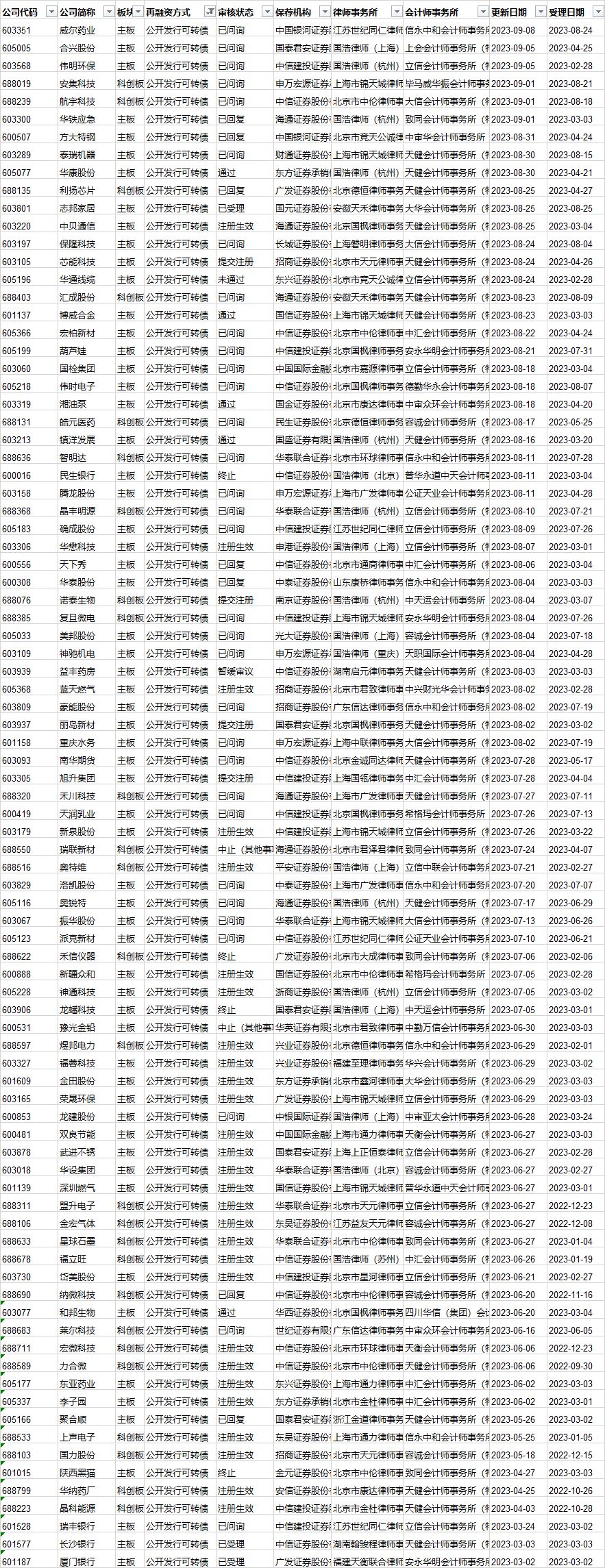 可转债发行审核进度: