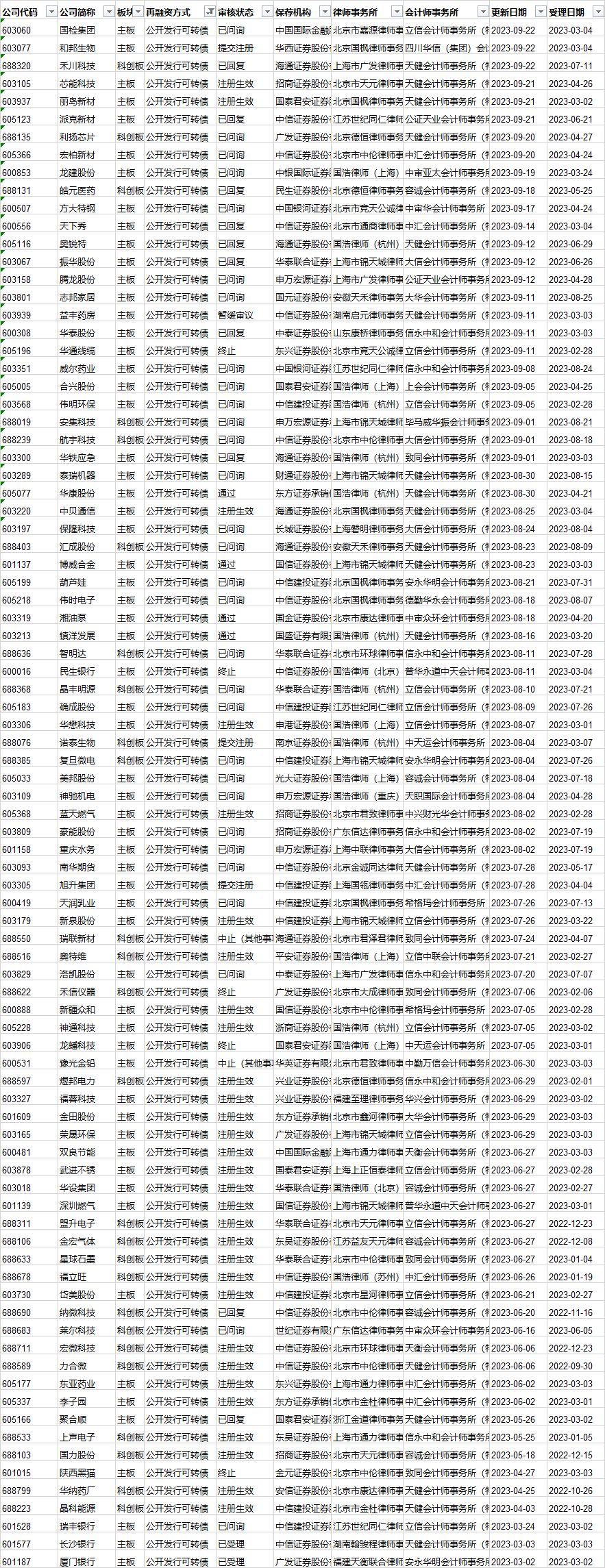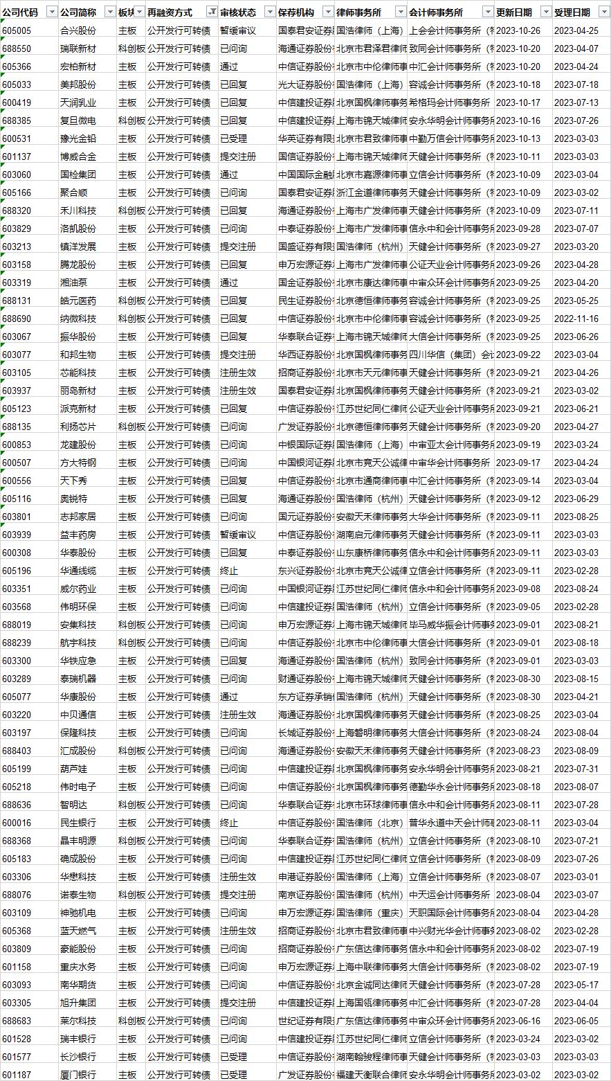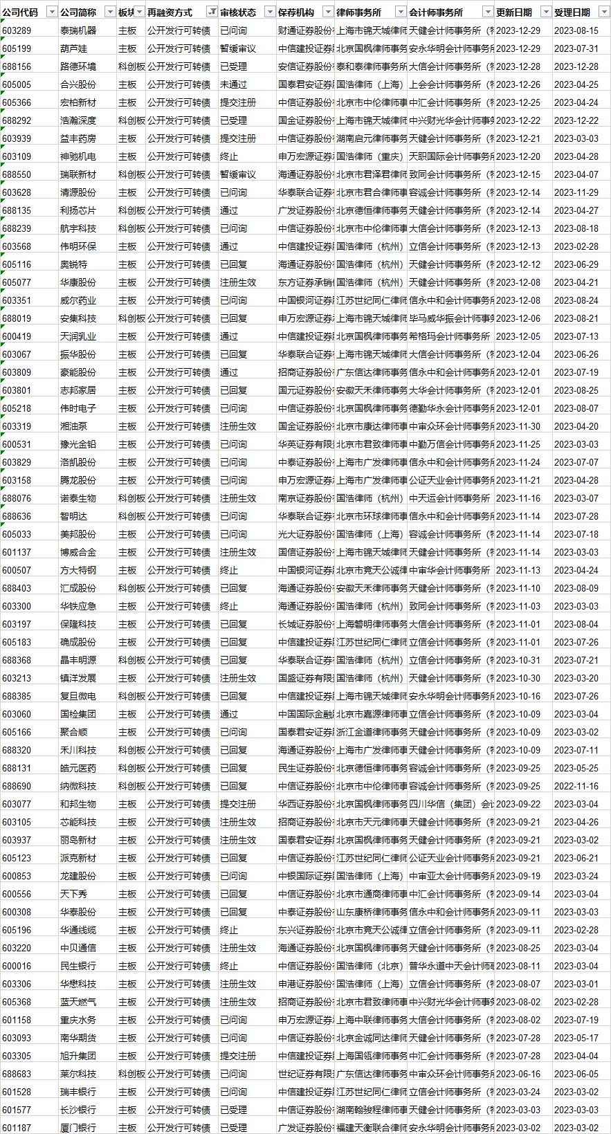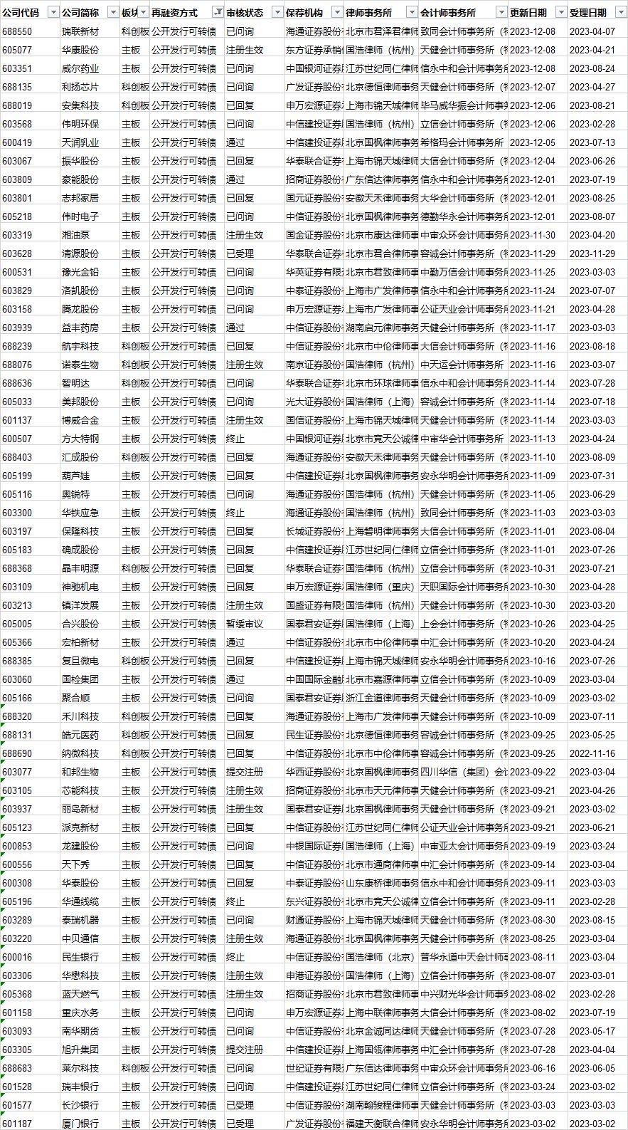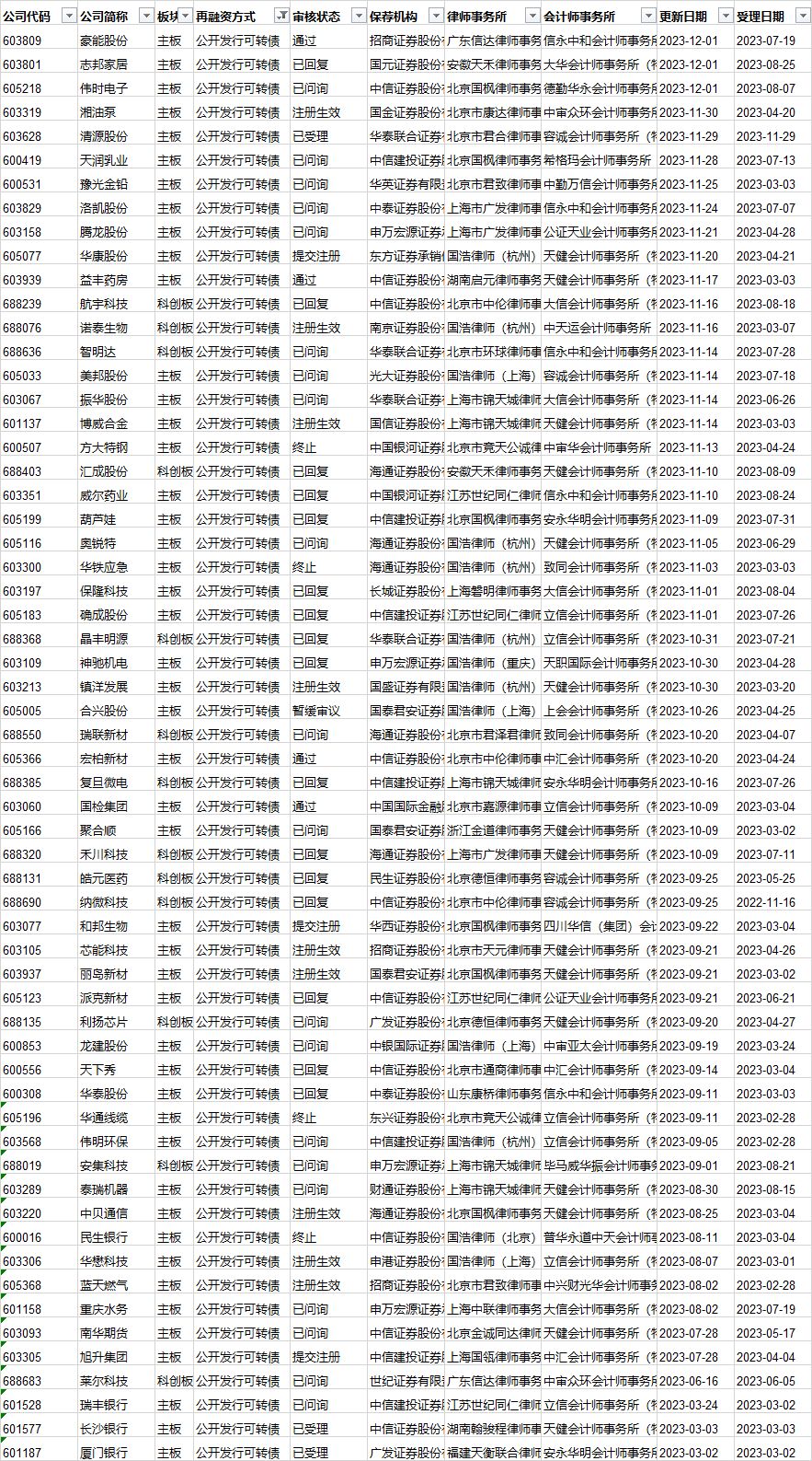 可转债发行审核进度:
