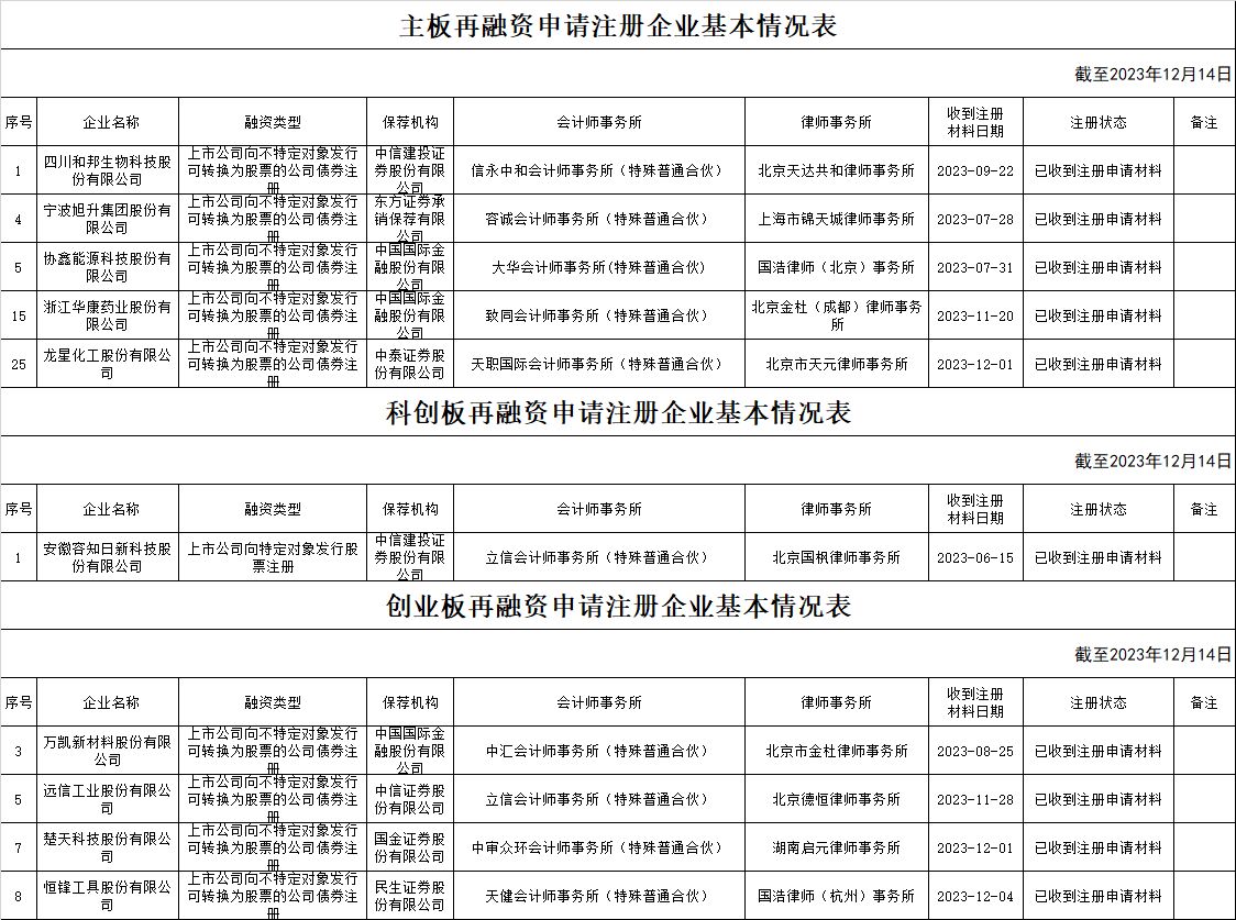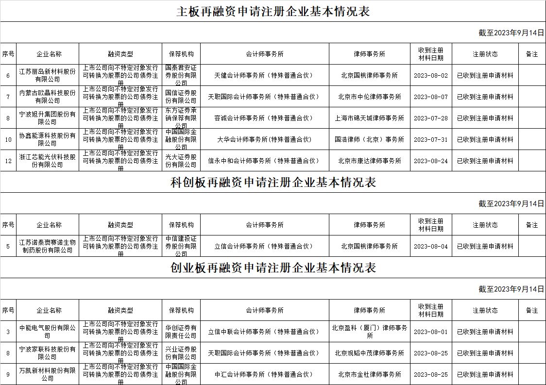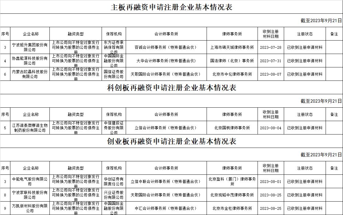 zjh科创板提交再融资注册申请企业基本情况