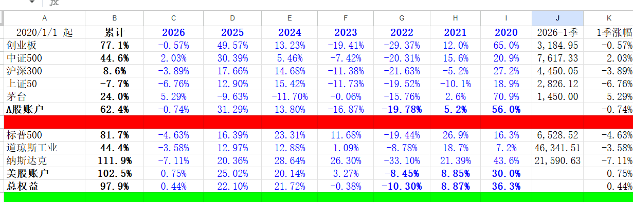2026 第一季度对股票不是很好啊,A股美股整体来说都是跌的