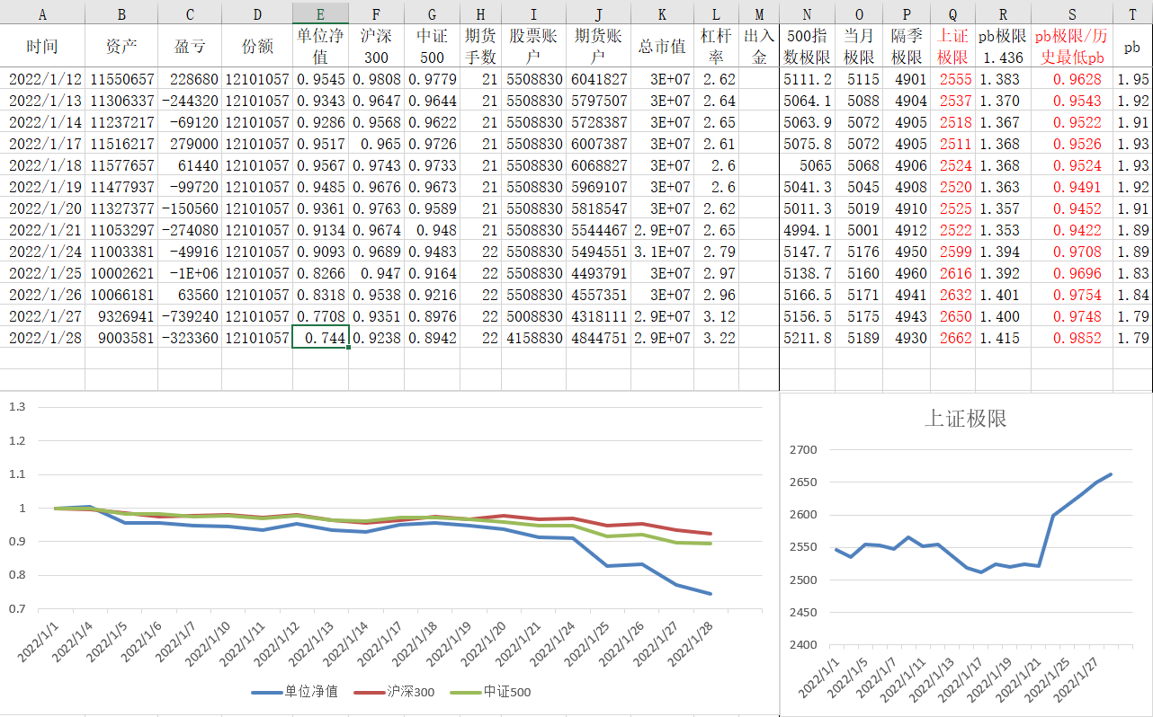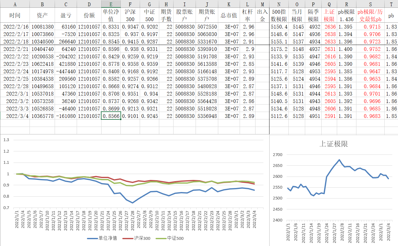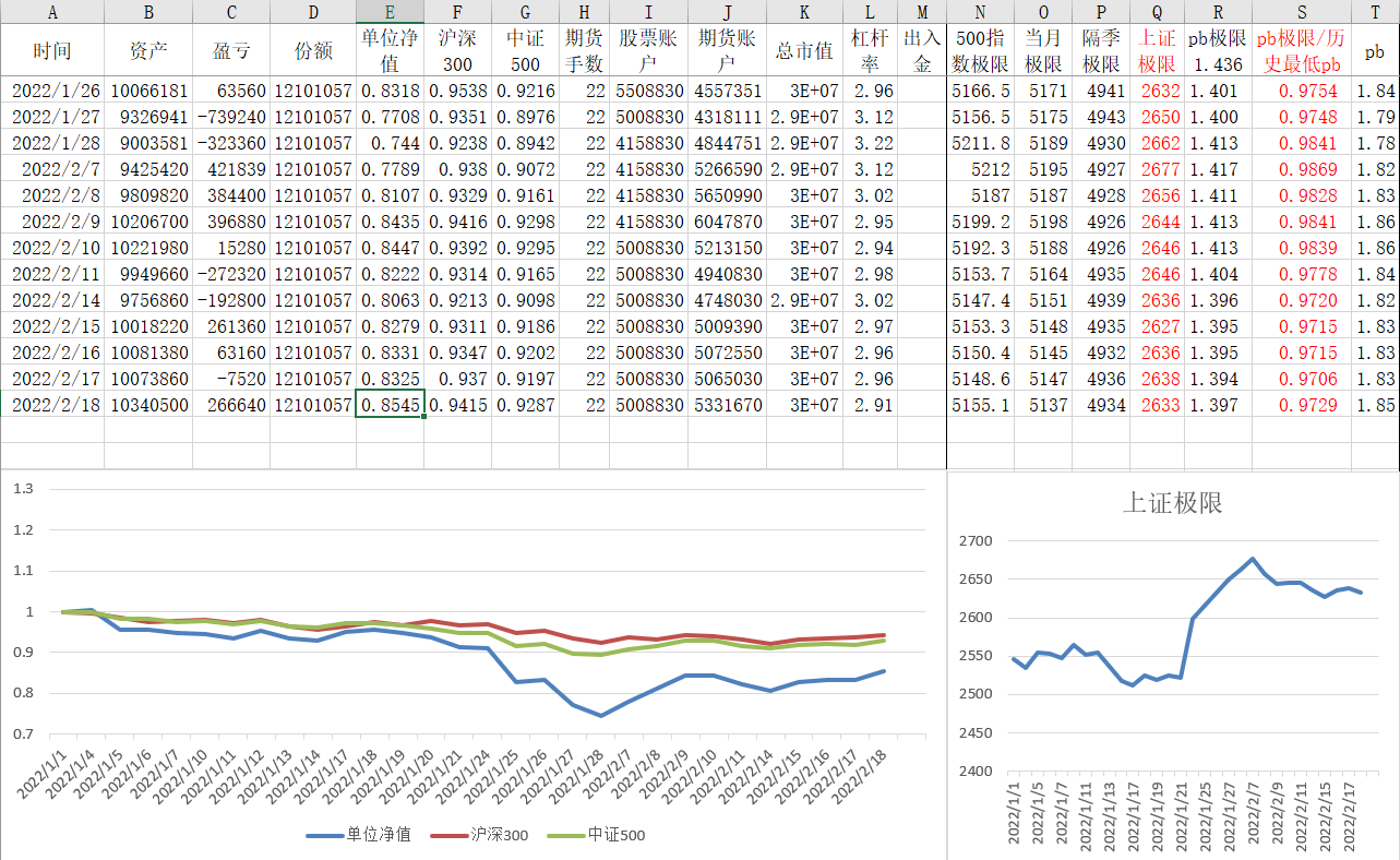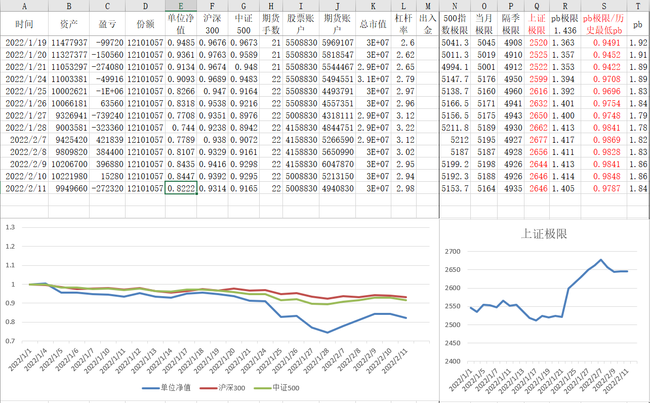 每天看一遍,确实厉害,心态好,加了那么多手,并且2.6倍杠杆的。每天波动上百万心态那么好。股龄才7年不到吧。我也差不多。佩服佩服。如果有机会一定当面请教。@karinhongke2014年中就开始炒股了,2015开始完整记录收益,现在这套系统投资的是宽基指数,真的能让人很安心,这根我早期投资小盘股,次新股,有很大的不同,这个不同点简单来说,就是没有锚。小盘股和次新股,如果轮动的不好,没有alpha的话会很让人焦虑,从而怀疑策略有效性,而吃贴水策略,可以用估值高低控制杠杆,这比小盘股和次新股多了一个历史的锚,而贴水的存在能保证永远有正的alpha,只是最近小了一些。所以说我过去炒股经常午睡睡不着,晚上还失眠,但是自从吃贴水了以后,再大的回撤我都睡得很安心