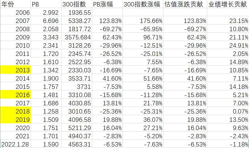 模仿楼主的表格,我统计了一下沪深300的历年数据: