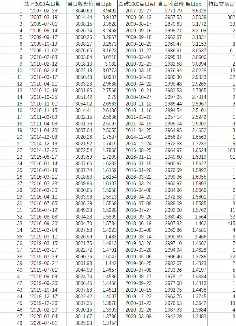 这是历史上上证综指突破2000点和3000点的历史统计,目前上证综指pb=1.45,我觉得上证综指跌到大概1.29/1.45*3400=3024差不多就止住了,跌幅11%,对应中证500跌到6000点,中证500pb会跌到1.62倍,这个估值水平,远比我系统目前的1.40安全的多