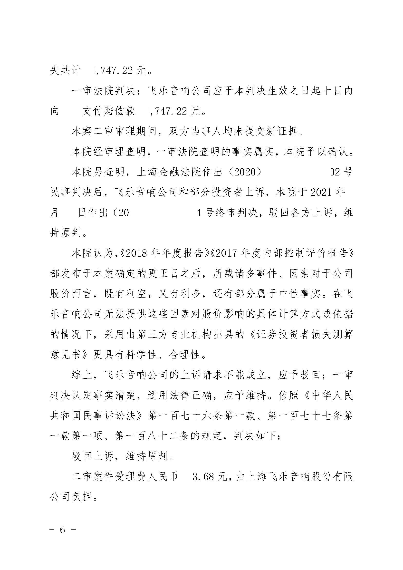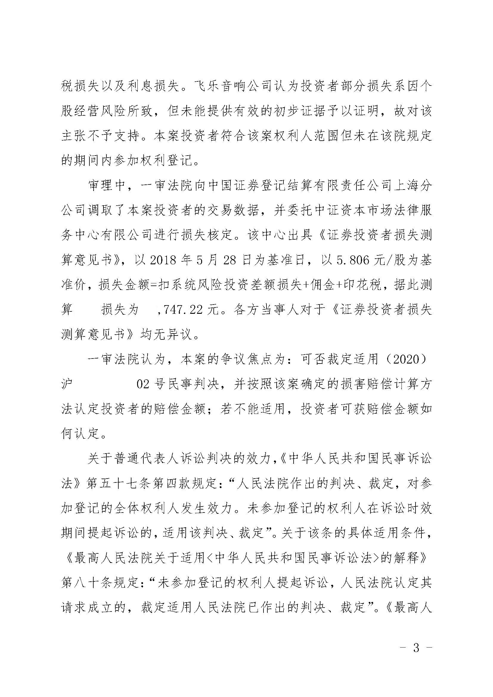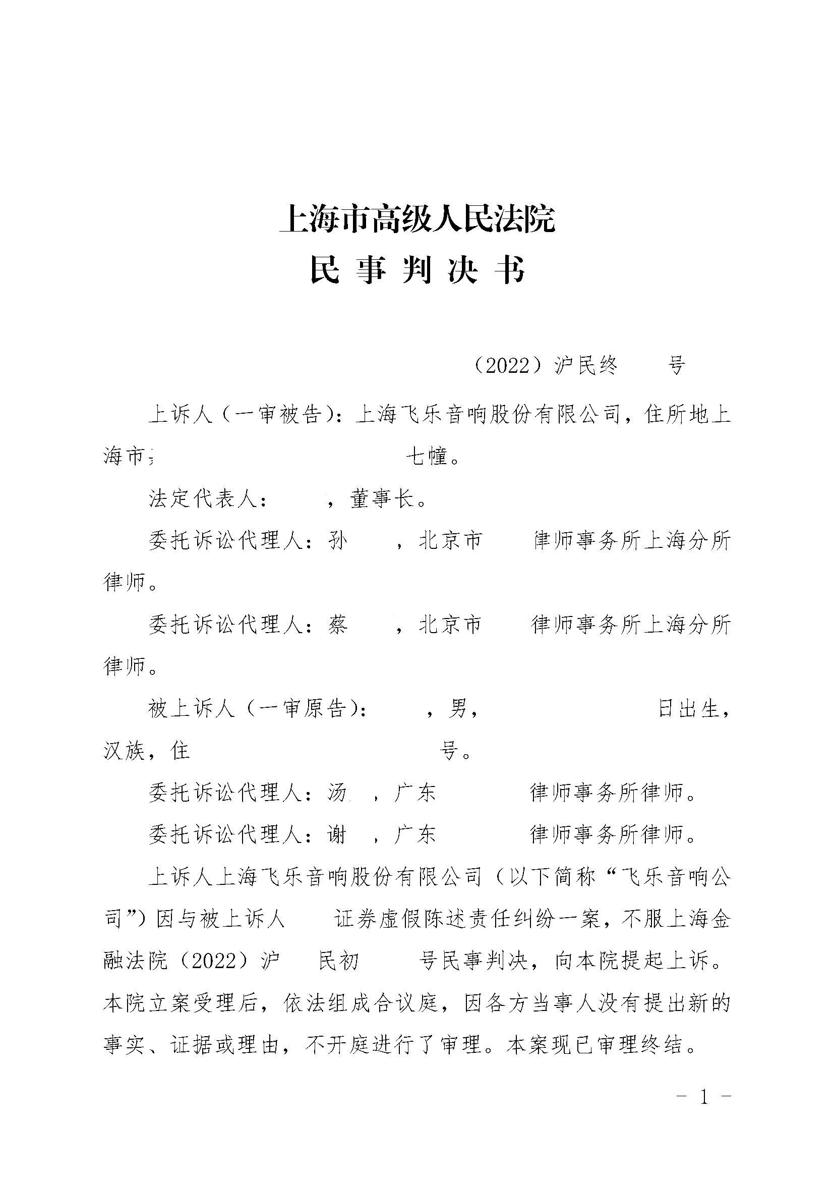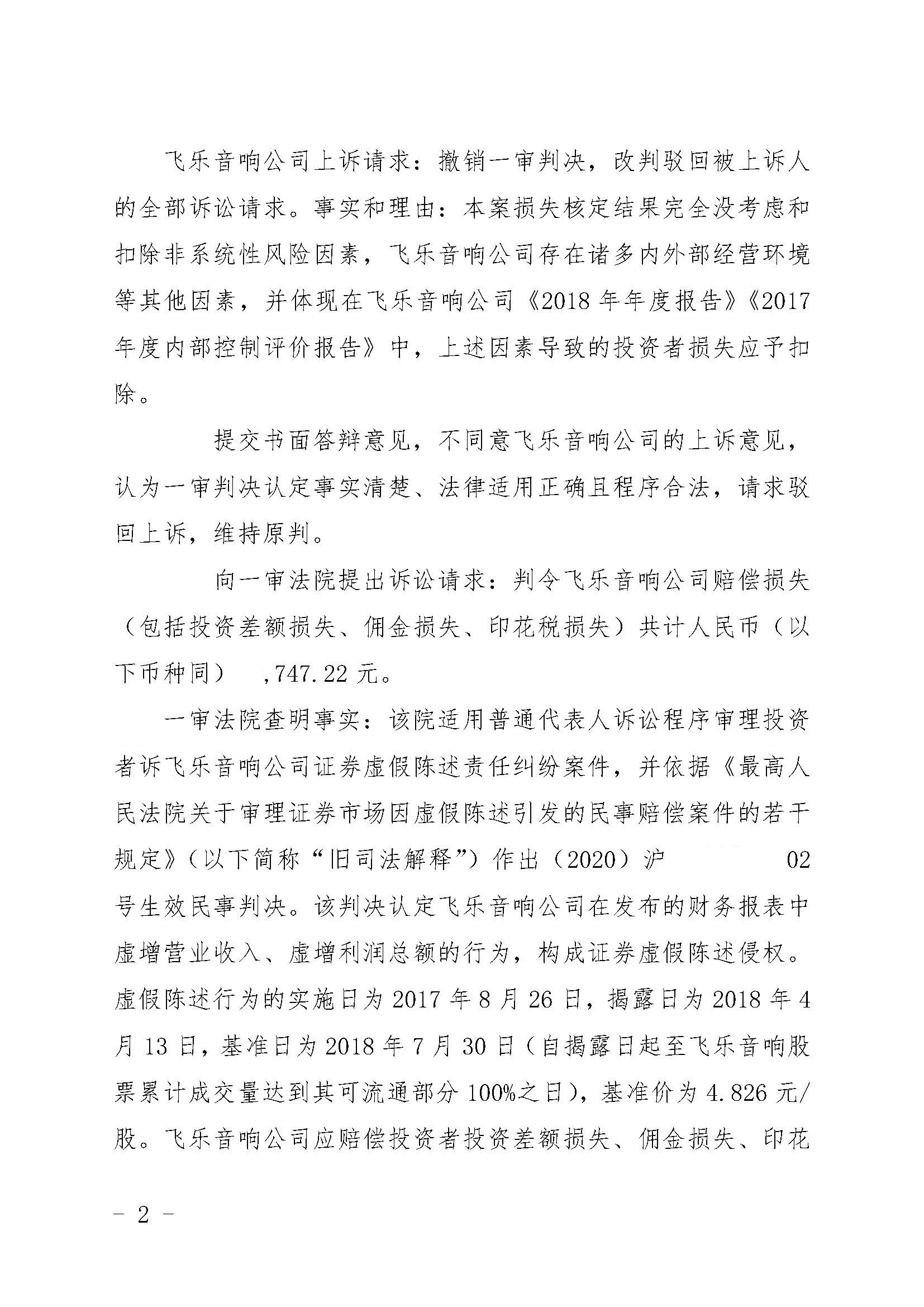 但是飞乐音响不服,在上海市高级人民法院进行了上诉。