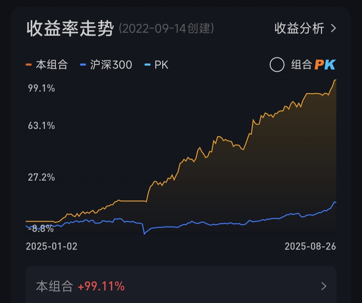 99%+-----+-----+-----+-----+-----+-----+-----+-----+-----+-----+今年表现最好的子策略收益99.11%了,离翻倍只差一点点,但是,不会就差这一点点吧……担心近期会有大跌……
