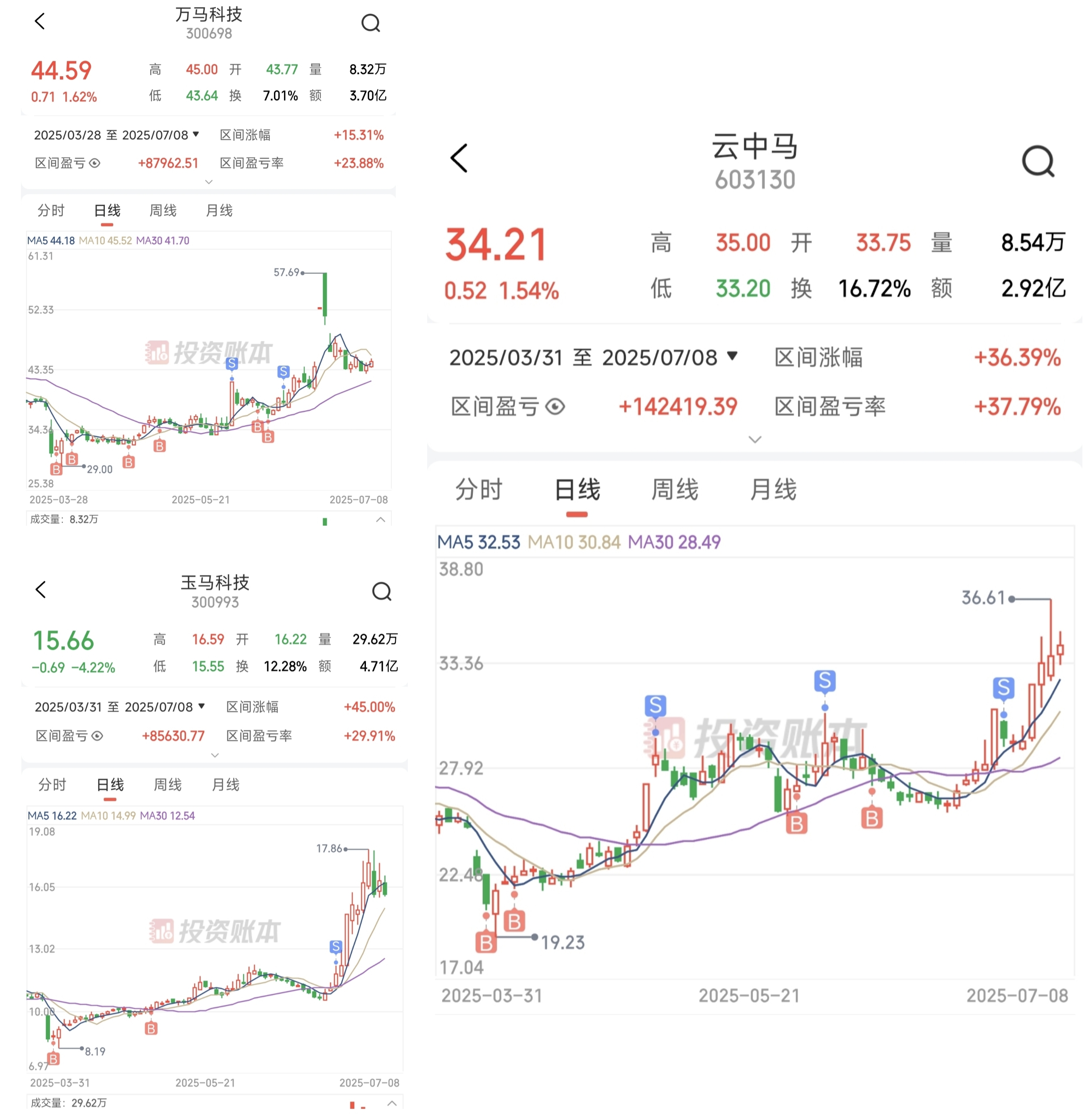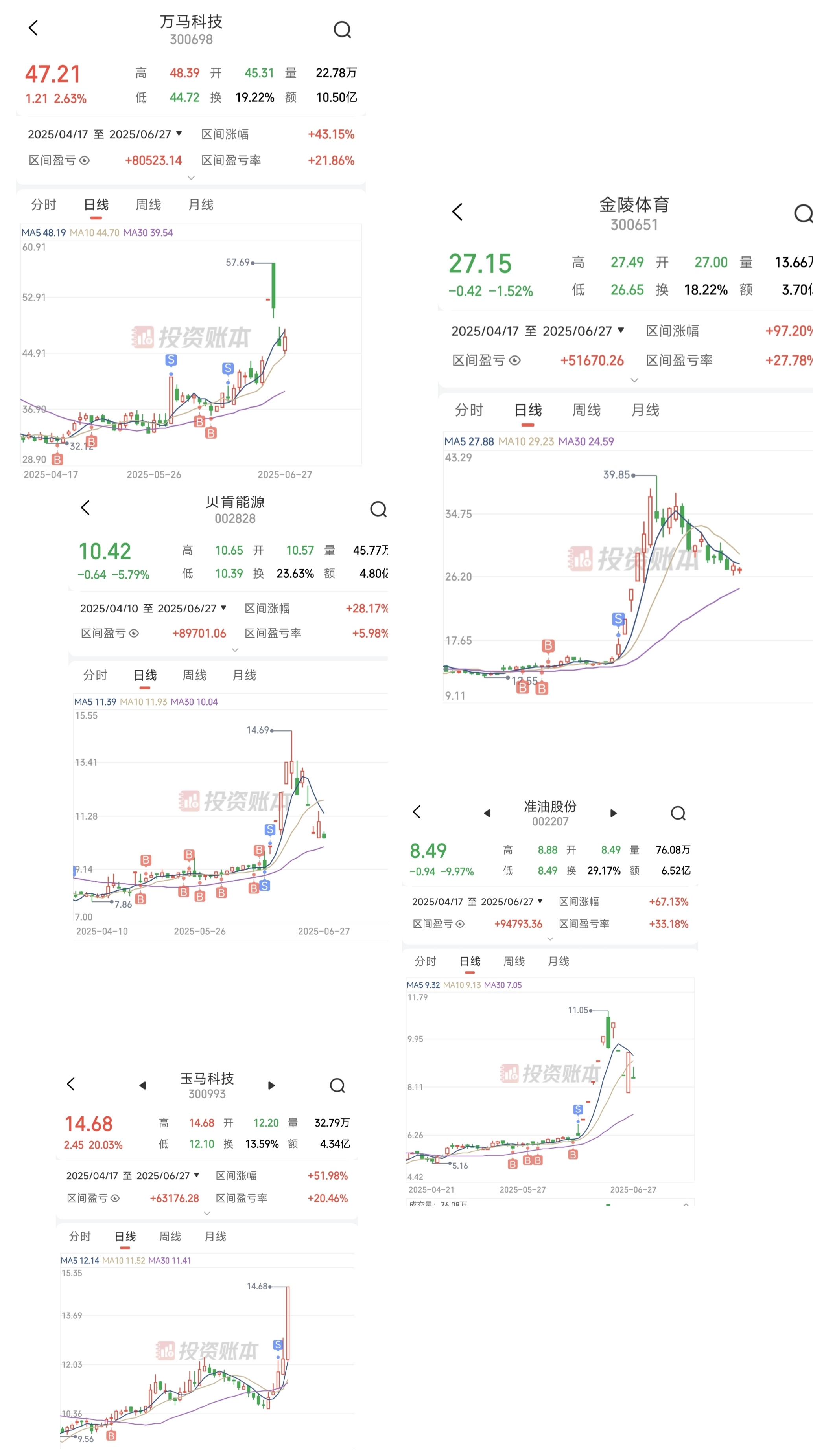 金陵体育、准油股份、玉马科技、贝肯能源、万马科技。。。