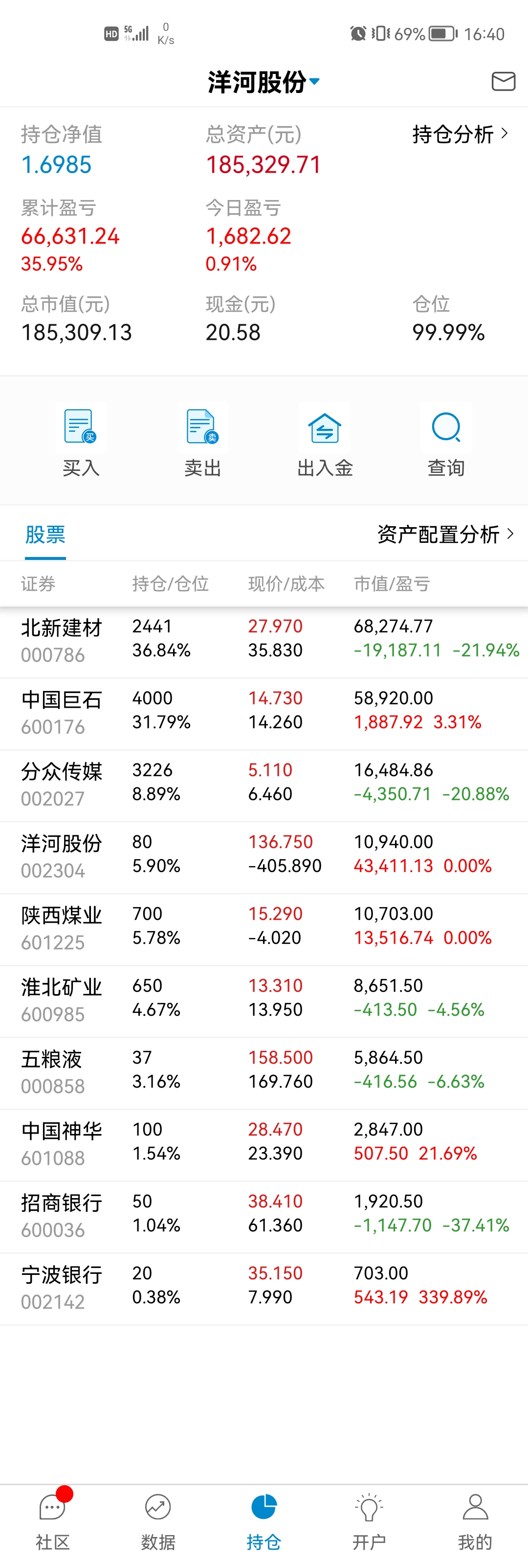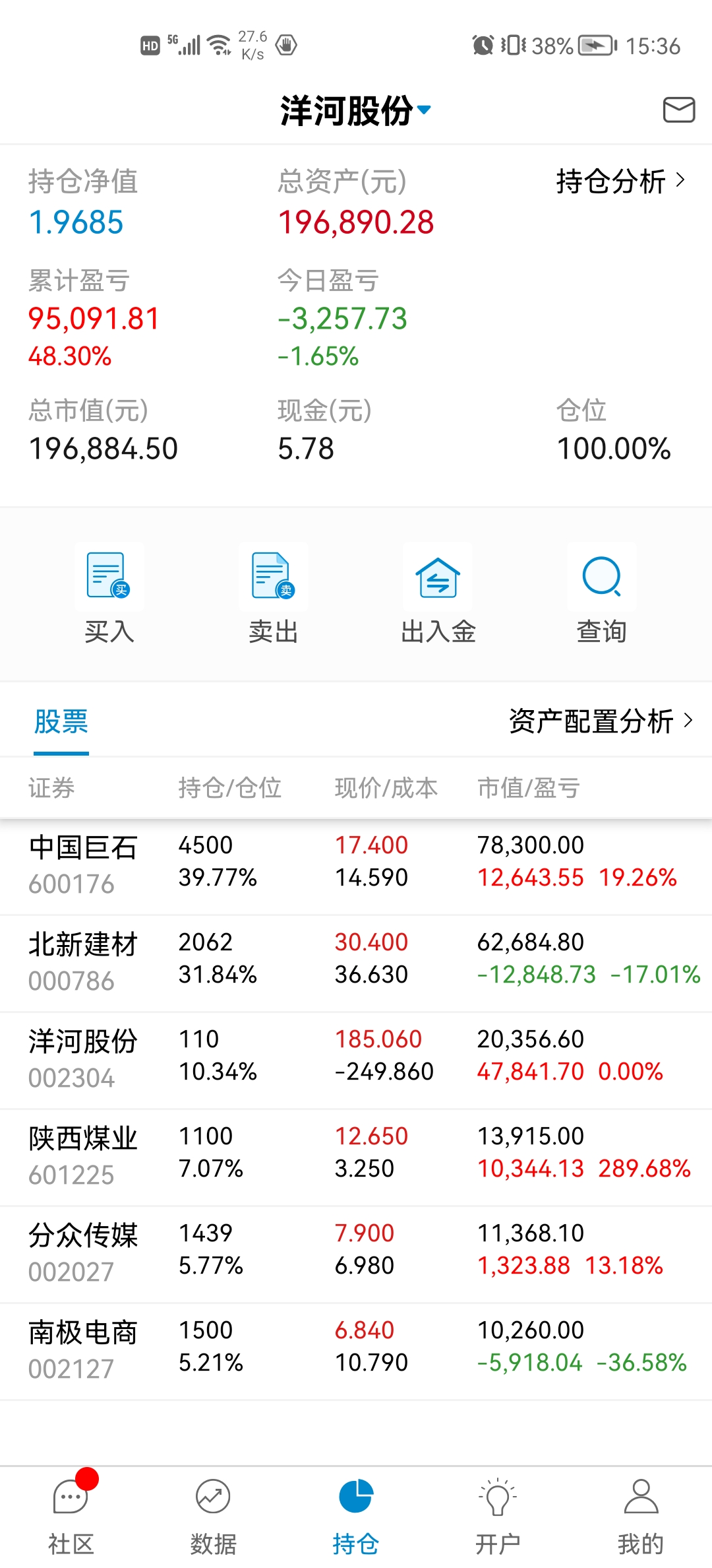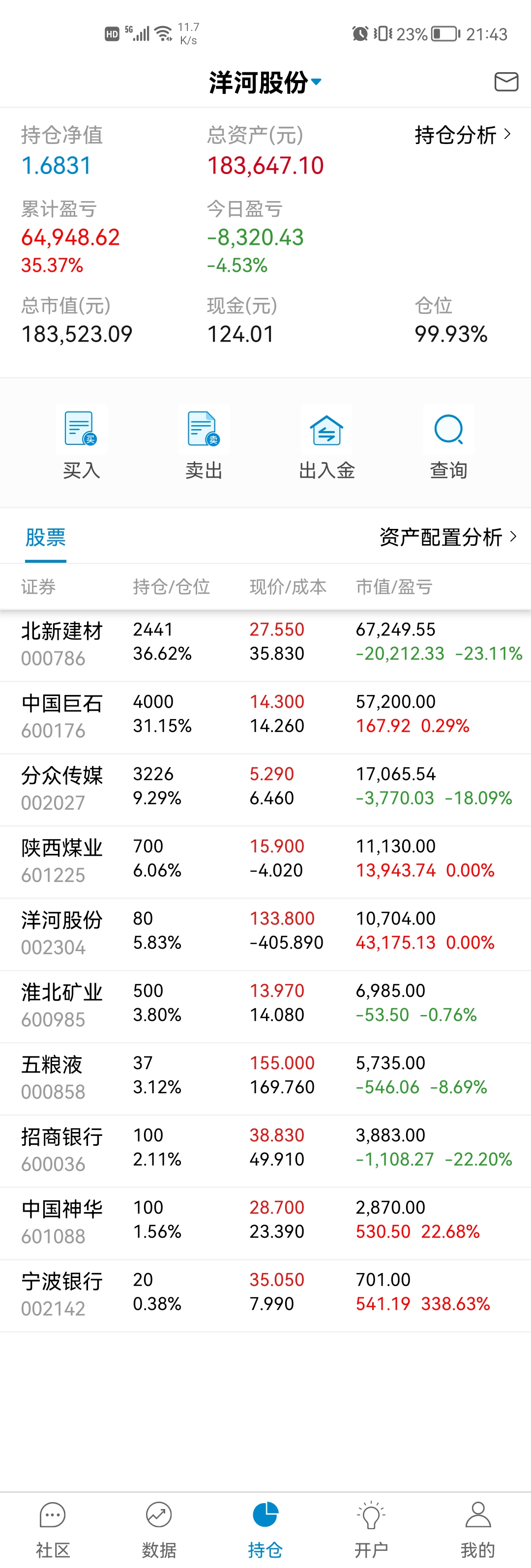 这三年也就买过不超过15支股票吧,亏的应该就2支,大冤种北新建材还在坑里,还有个很小仓位电商的忘记了。也有不少翻倍的分众、洋河、淮北矿业、陕煤,不到一倍的银行招商、宁波,平安、巨石、五粮液等。唯一现在持仓还亏的就是北新建材了,北新主要亏损的问题是做了个大的过山车,加上买的不便宜,不过是不是个错误我还想在看一看,年报还没看到雷,但没有自己预期的好。