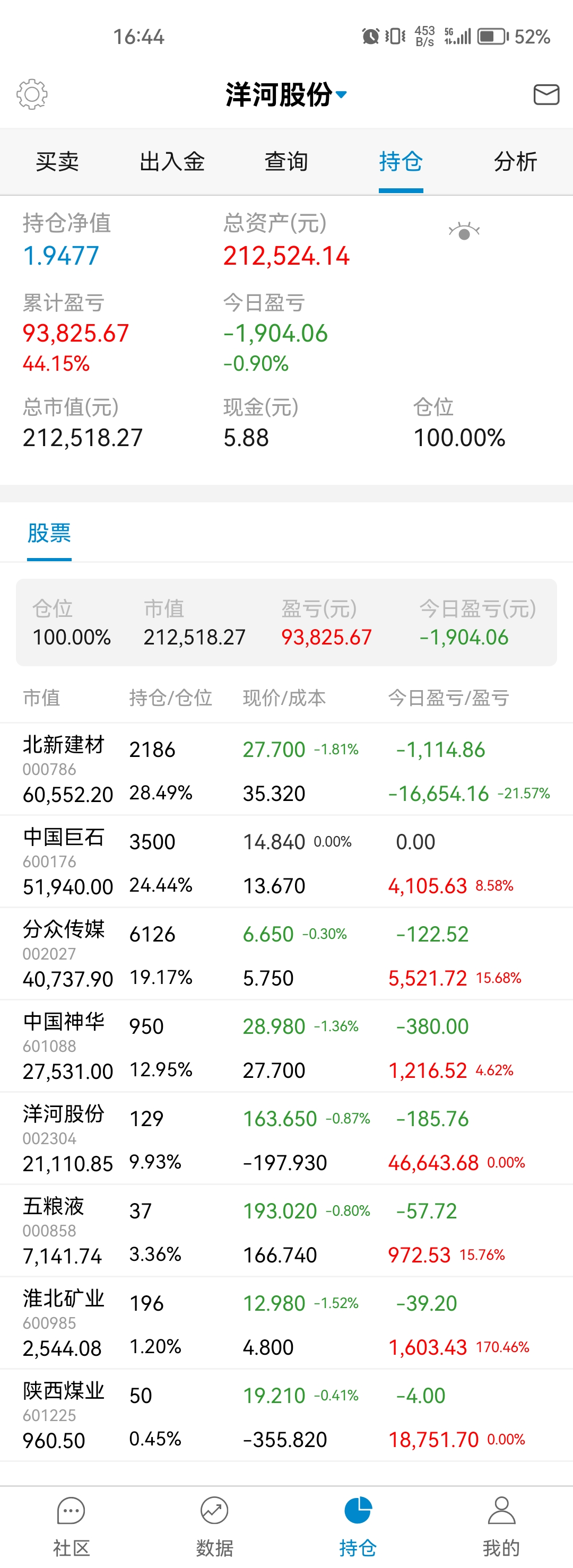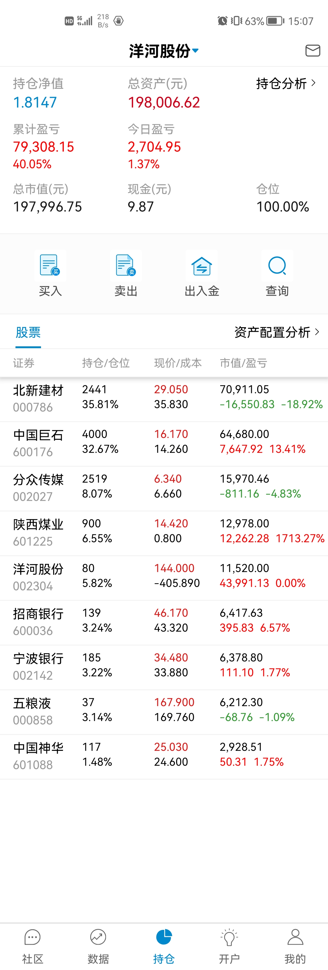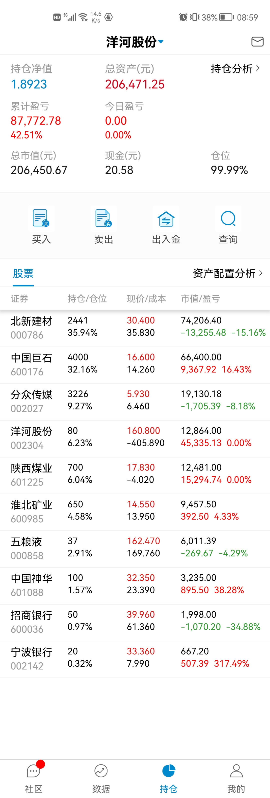 这三年也就买过不超过15支股票吧,亏的应该就2支,大冤种北新建材还在坑里,还有个很小仓位电商的忘记了。也有不少翻倍的分众、洋河、淮北矿业、陕煤,不到一倍的银行招商、宁波,平安、巨石、五粮液等。唯一现在持仓还亏的就是北新建材了,北新主要亏损的问题是做了个大的过山车,加上买的不便宜,不过是不是个错误我还想在看一看,年报还没看到雷,但没有自己预期的好。