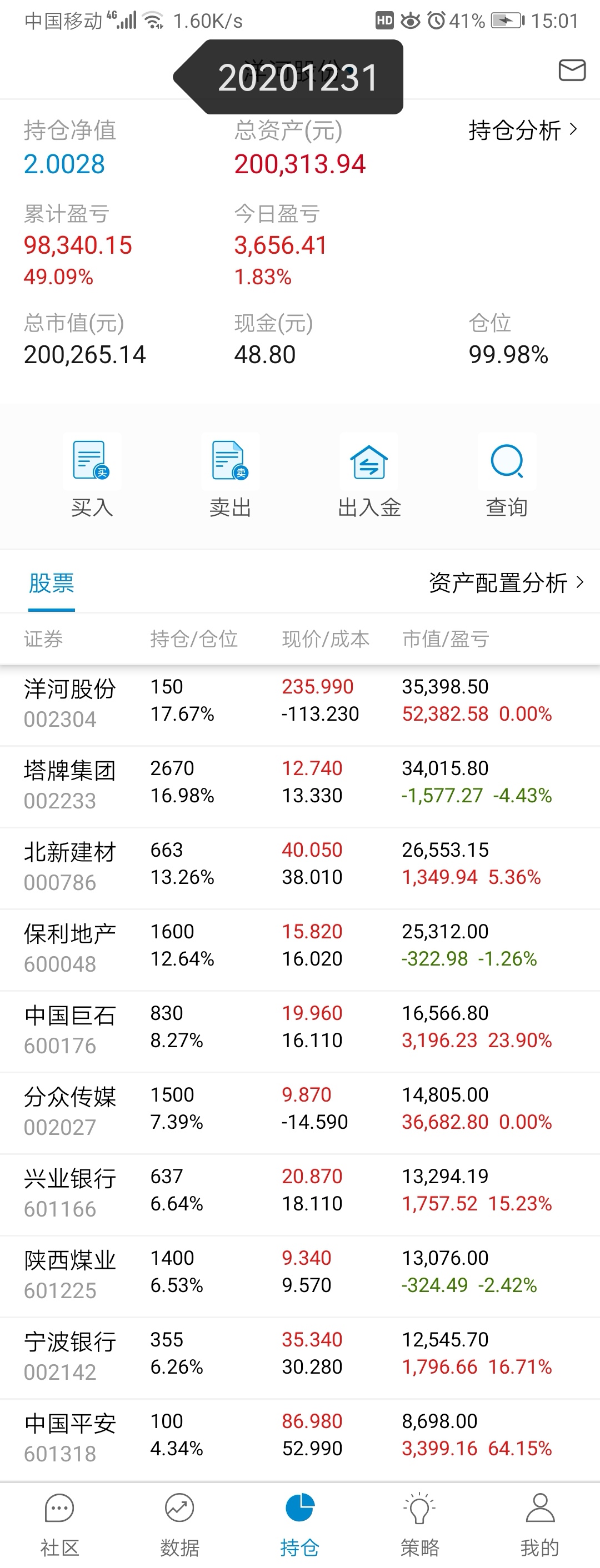 另有一集思路模拟盘,建仓于2020.3.25,全部个人门票股,一般情况下都是满仓轮动除非没有合适标的更新模拟盘2020/12/31,正好净值2.0(实际金额非实盘,就是图方便设置了10万,只看净值即可,收益切勿当真)